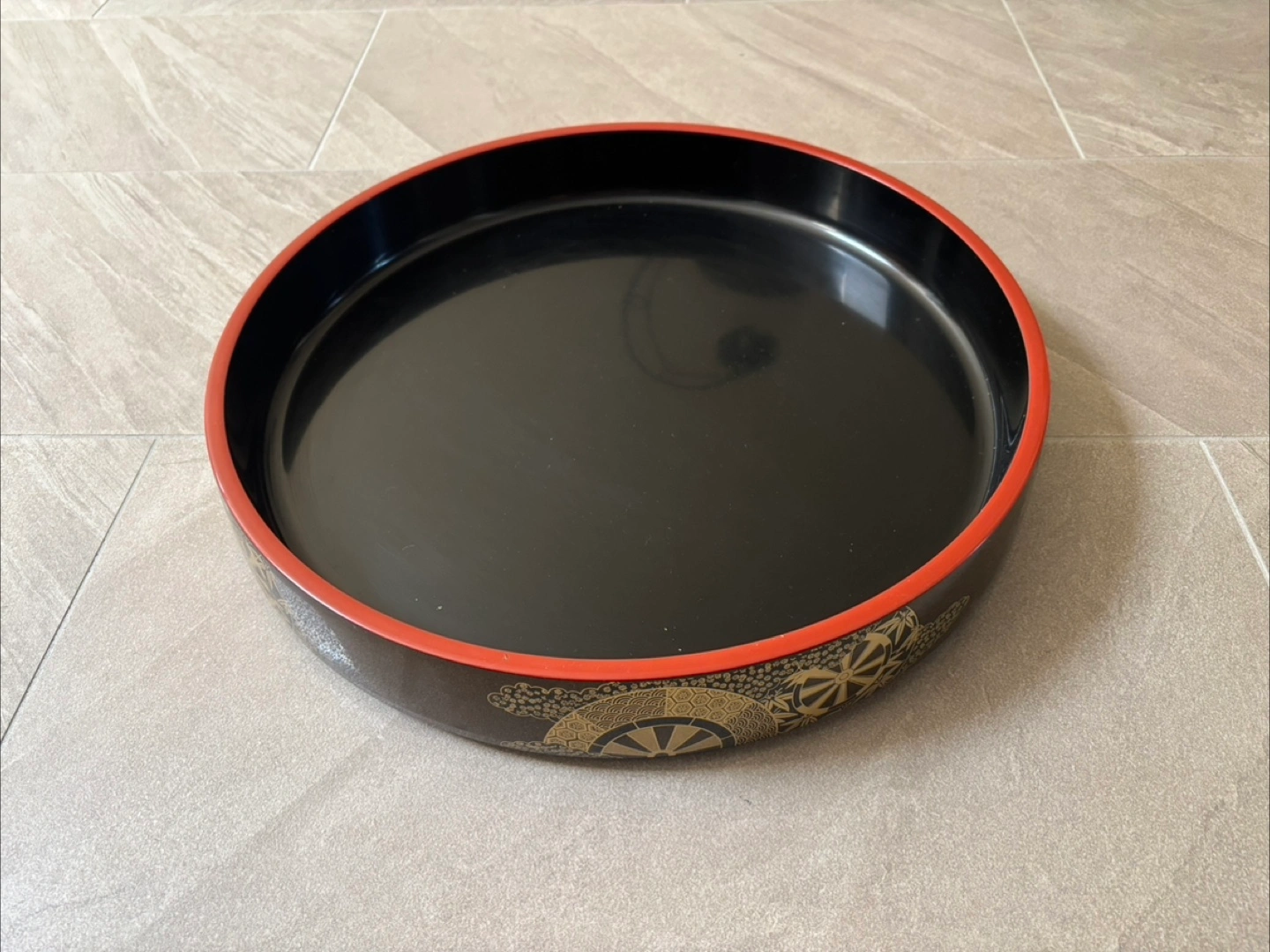 Japanese lacquerware sushi tray! It measures approximately 17 inches in diameter. Probably never been used. Just stored away for a long time.