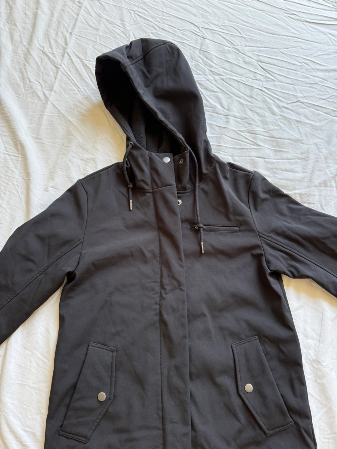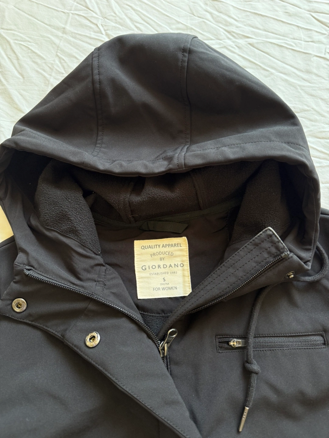 Giordano hooded jacket in black! It's perfect for layering or wearing on its own during cooler days. The hood is adjustable, and the jacket has a comfortable fit. NEW