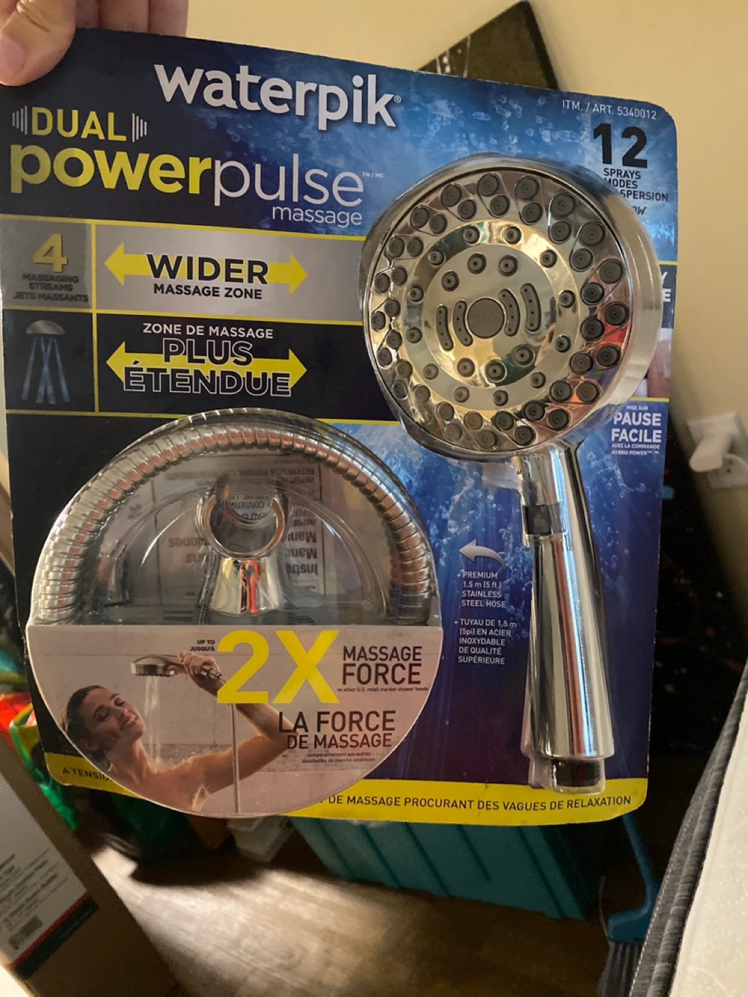 Looking to upgrade your shower experience? I'm selling a brand new Waterpik PowerPulse UltraThin Hand Held Shower Head! Originally bought for $154.73, this shower head is designed for easy selection and a great shower. It's in new condition and ready to be installed in your bathroom