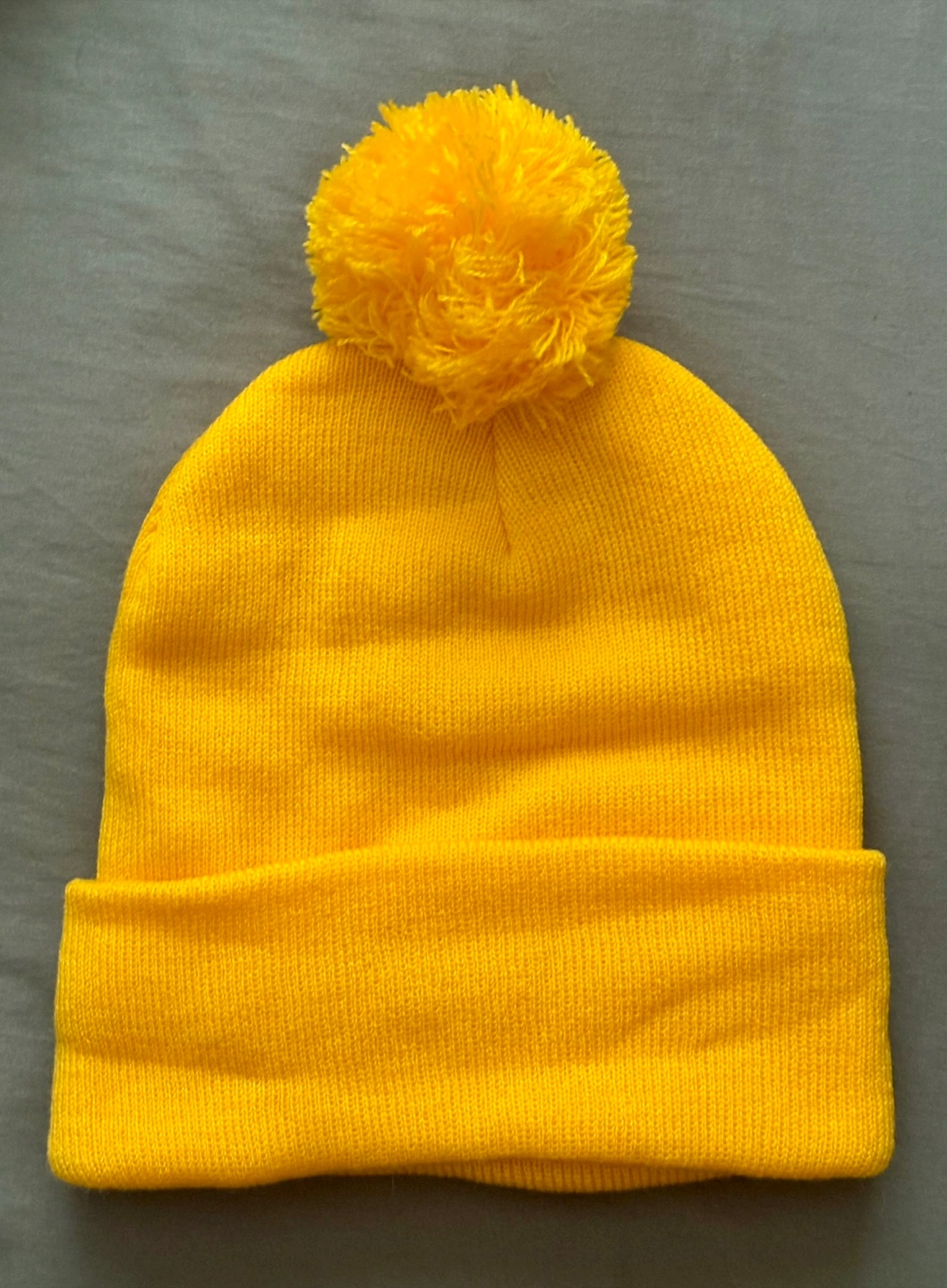 Keep your head warm with this bright yellow beanie! It's a Spinach Feelz beanie with a fun pom pom on top. Perfect for adding a pop of colour to your winter wardrobe!