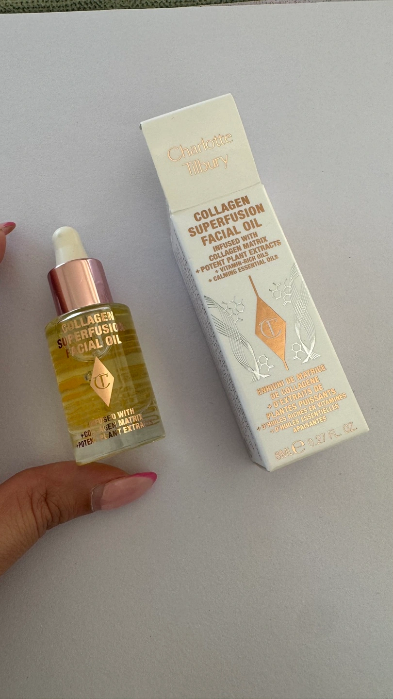 This is a Charlotte Tilbury Collagen Superfusion Facial Oil. It's a mini size, 8ml / 0.27 fl oz. The box says it is infused with collagen matrix, potent plant extracts, vitamin oils and calming essential oils. Retails for $40.50!