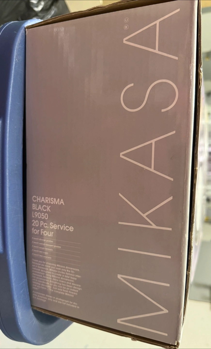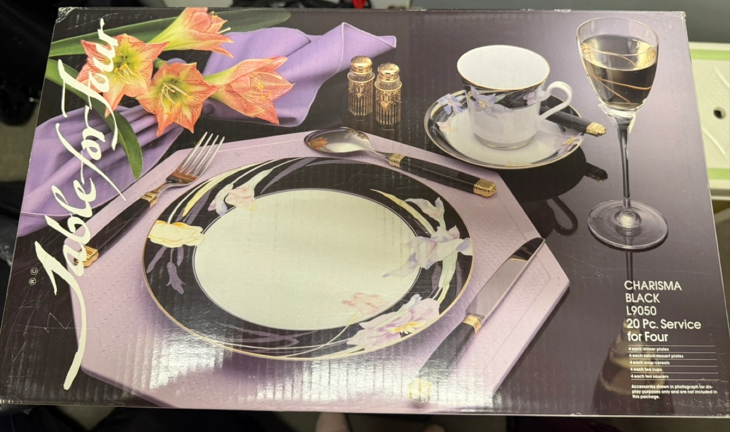 Selling a Mikasa Charisma Black L9050 20-piece dinnerware set for four. It includes: