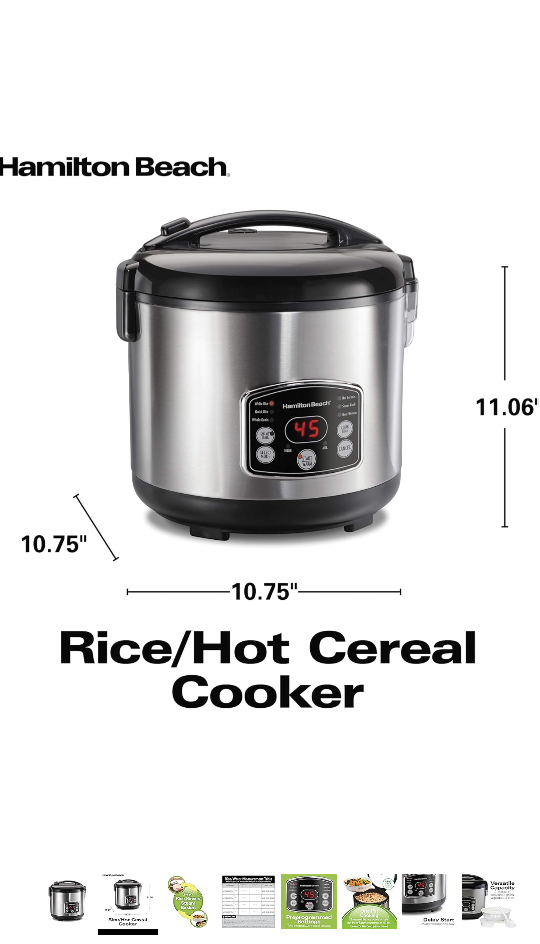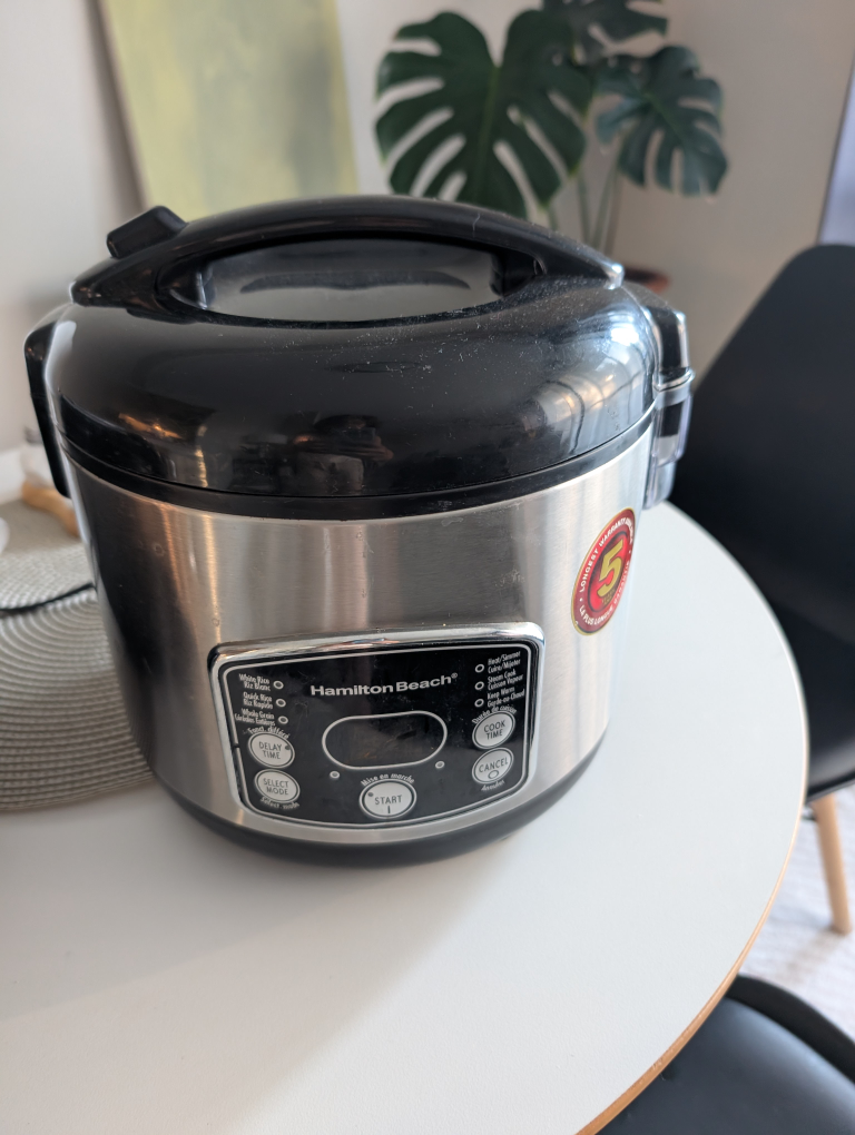 I'm selling a Hamilton Beach rice and hot cereal cooker! It's in great shape and ready to help simplify your cooking. It has preprogrammed cooking functions for white rice, quick rice, whole grain, and more. You can also use it to heat/simmer, steam cook, and keep food warm.