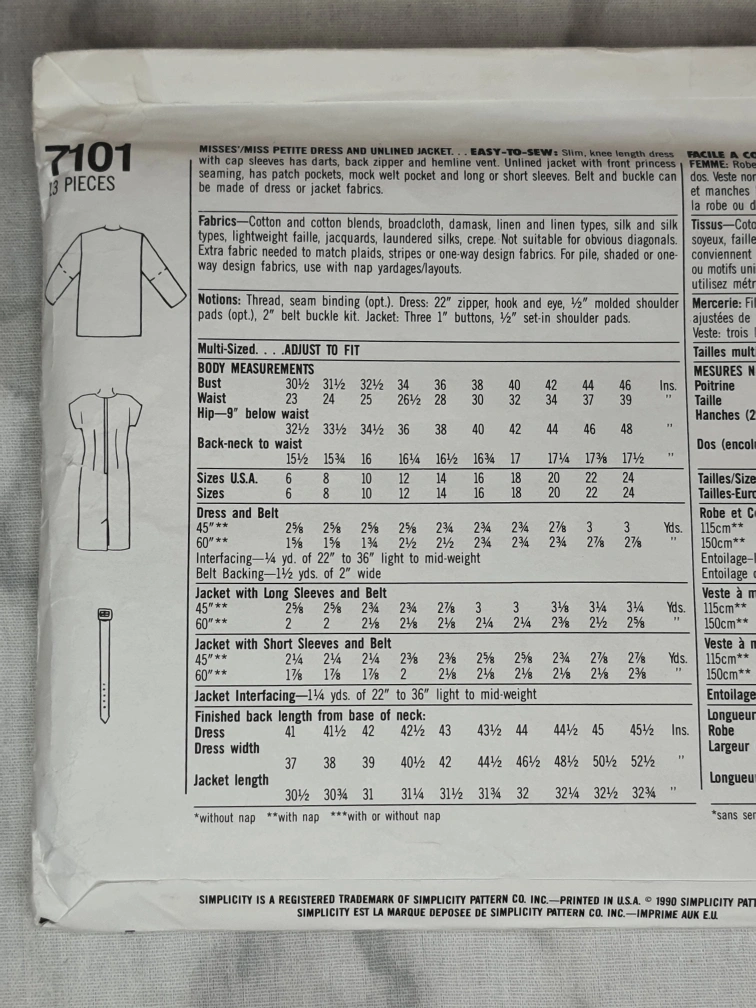 Selling a Simplicity sewing pattern, number 7101. This pattern is for misses'/miss petite dress and unlined jacket. Size H5 (6-14). Great for creating your own custom wardrobe!