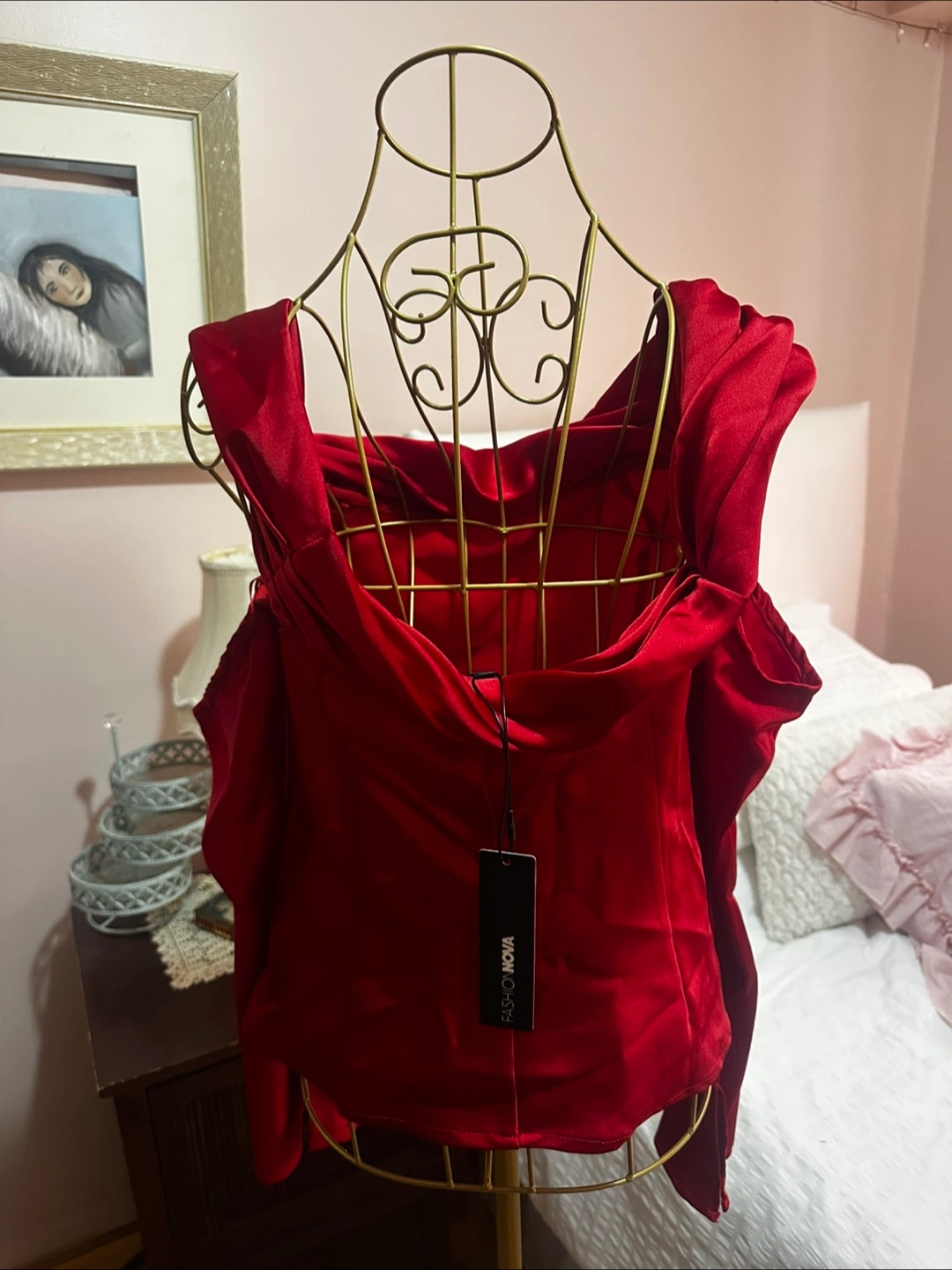 Selling a red off-shoulder top from Fashion Nova! Brand new. Still has tags. It’s medium but too big for me. The material feels nice and it's a really striking colour, perfect for dressing up or down. Feel free to message me with any questions!