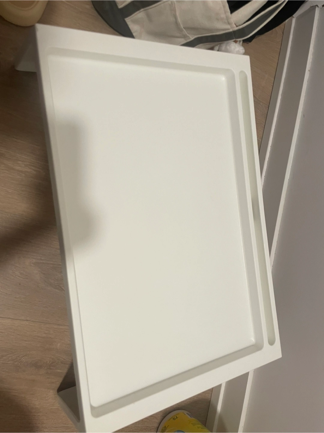 Selling a simple white tray table from IKEA! It's in great shape and perfect for using as a side table or for breakfast in bed. Super easy to assemble as shown in the instructions printed on the bottom of the tray