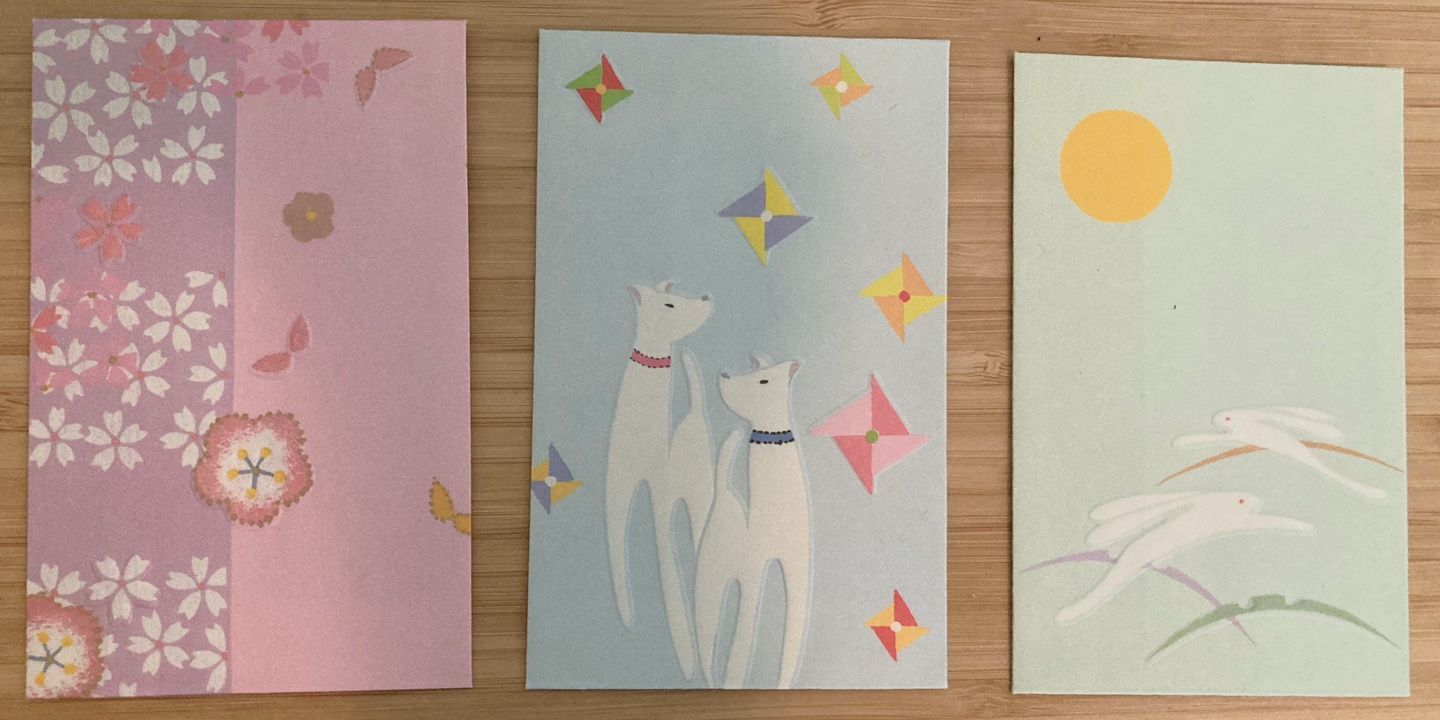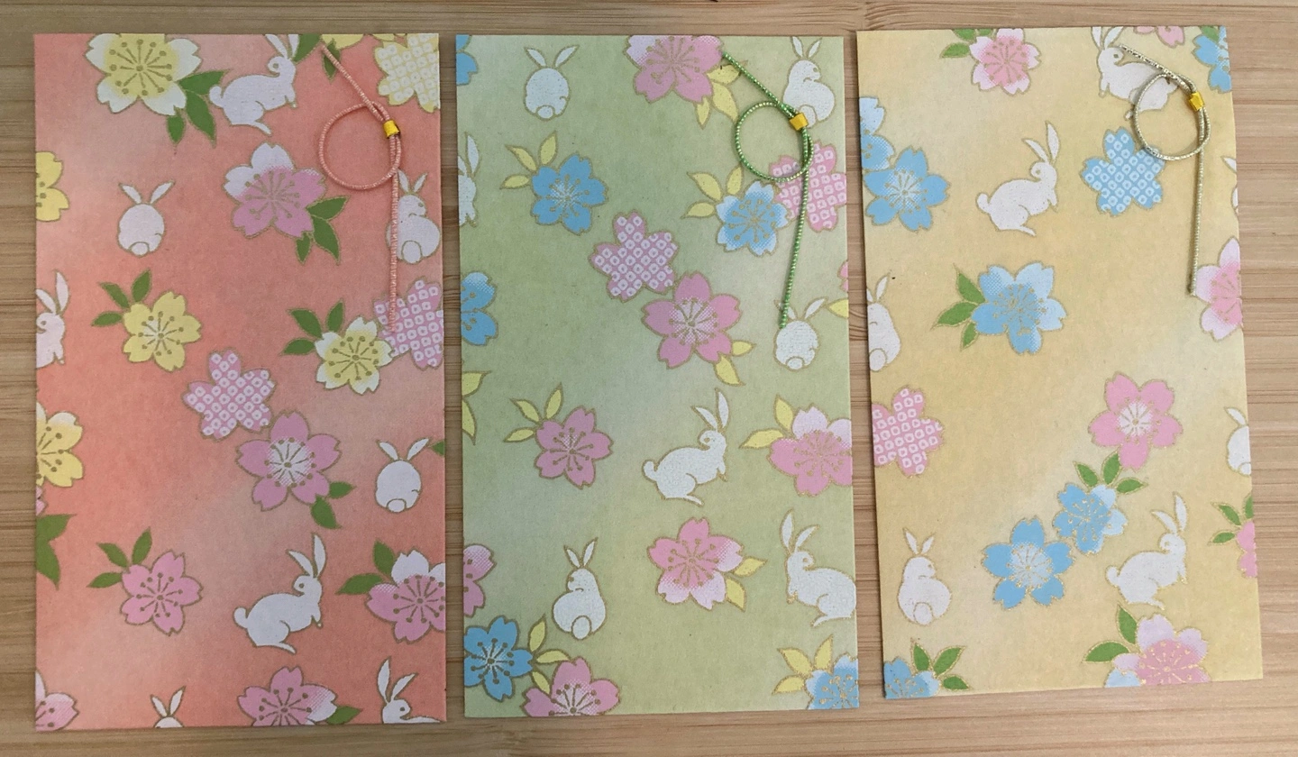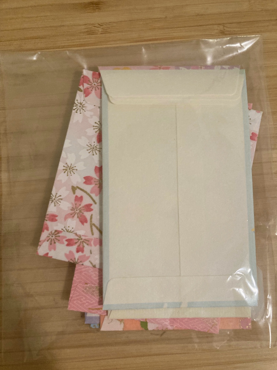 They’re brand new and still sealed in original packaging. Here's a set of Brand new Japanese traditional envelopes, perfect for adding a touch of charm to your letters or cards! They come in a variety of colours and designs, featuring cherry blossoms and cute bunnies. Great for special occasions or just to brighten someone's day