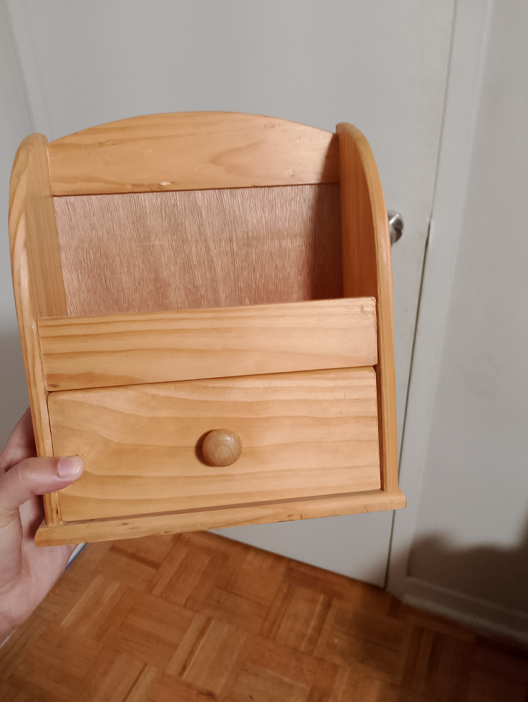 Selling a cute wooden wall organizer! It's perfect for storing small items and has a little drawer for extra storage. It's in great shape and ready for a new home!