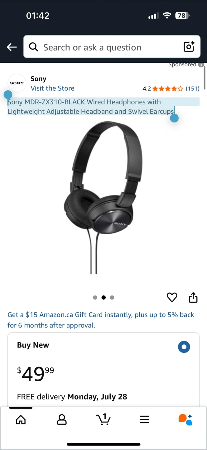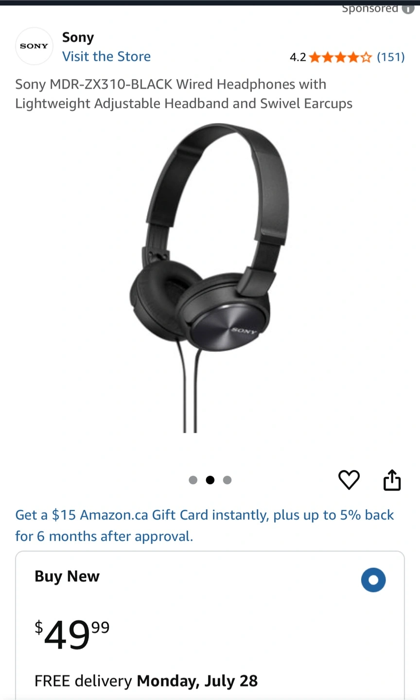 Selling a pair of Sony MDR-ZX310-BLACK wired headphones in excellent condition! These headphones feature a lightweight adjustable headband and swivel earcups for comfortable listening. Originally bought for $49.99