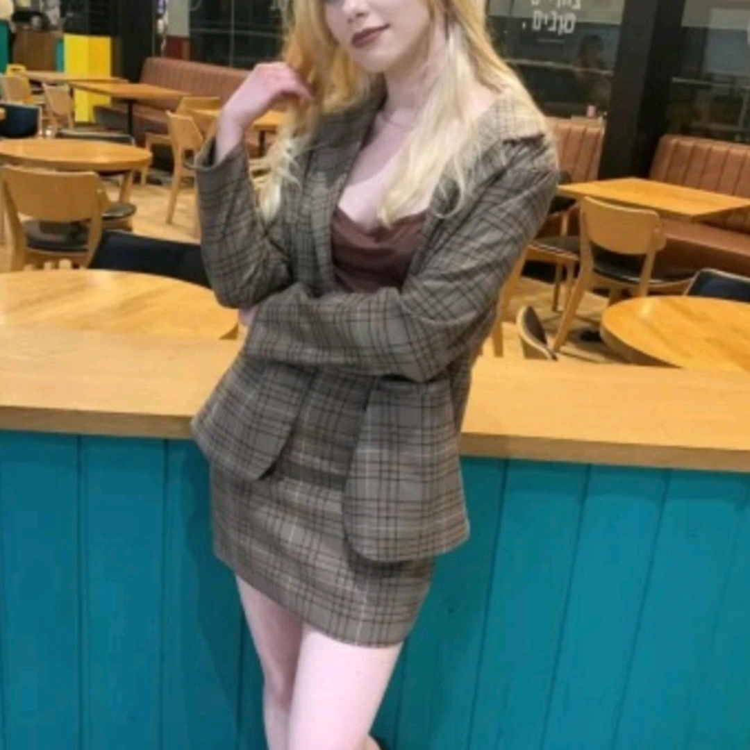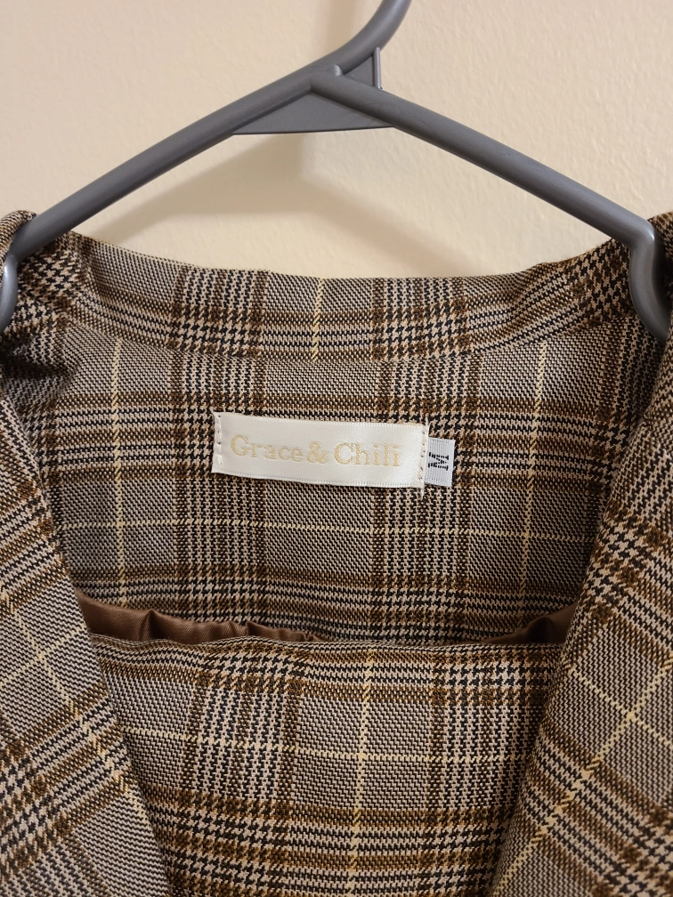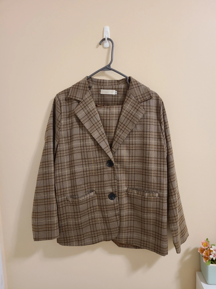 Women's brown plaid blazer and skirt set. Good condition! Worn only a couple of times. Unfortunately the skirt doesn't fit me anymore.