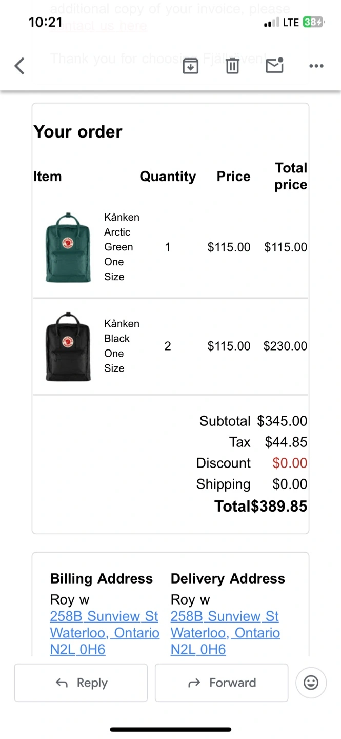 Fjallraven Kanken Backpack, Black (New + Receipt)