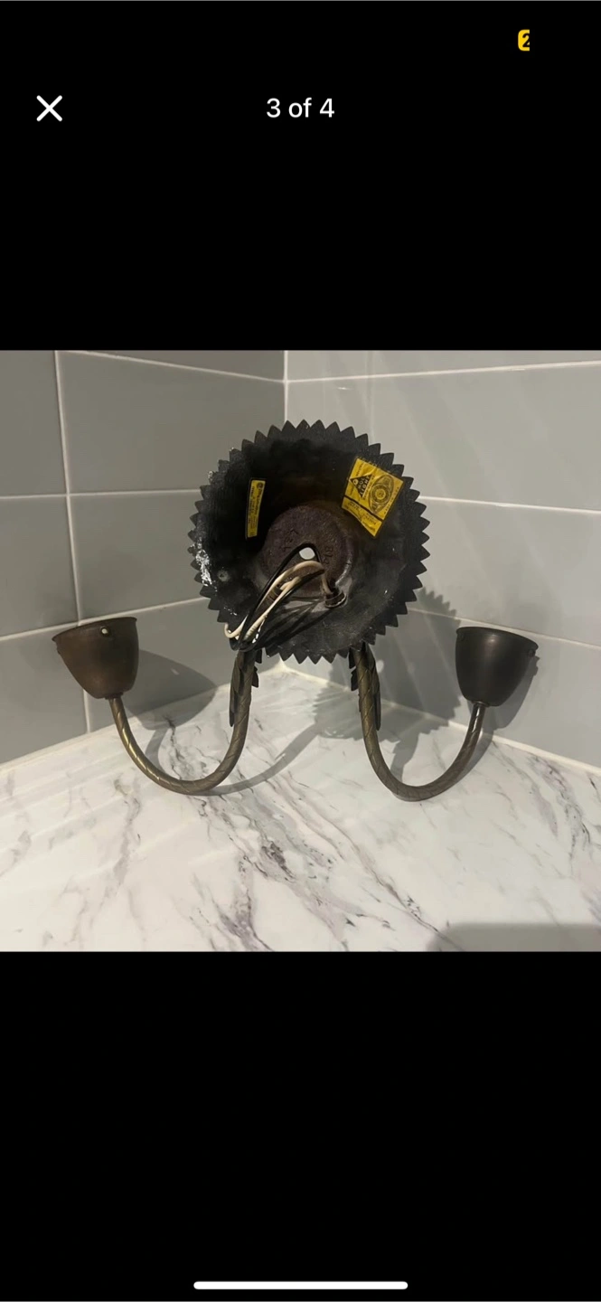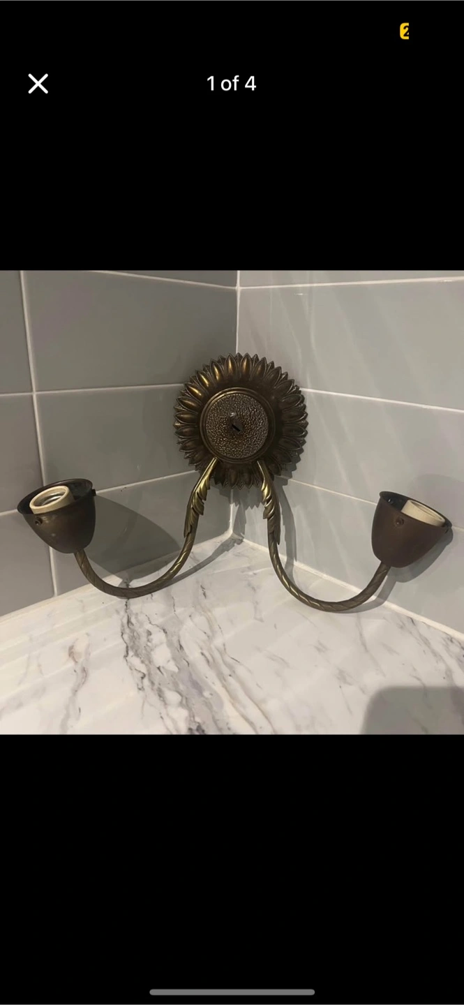 Selling a vintage wall light fixture by Thomas Industries. It has a unique sunflower design and would add a touch of retro charm to any room! It has two light sockets