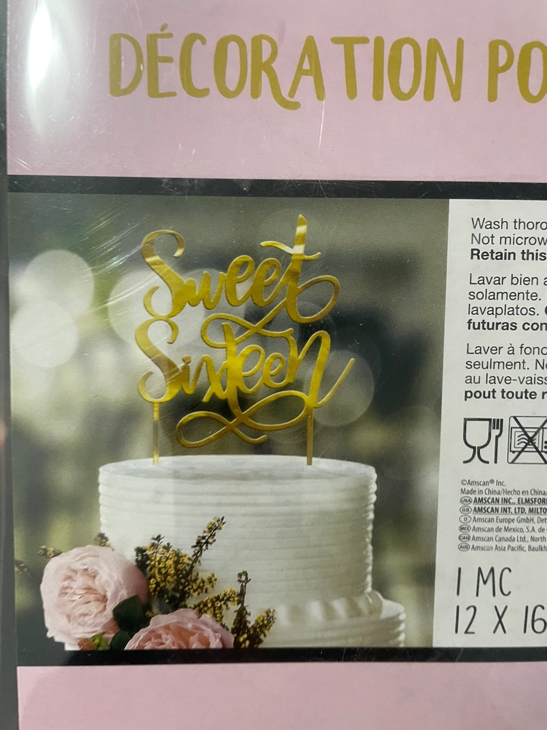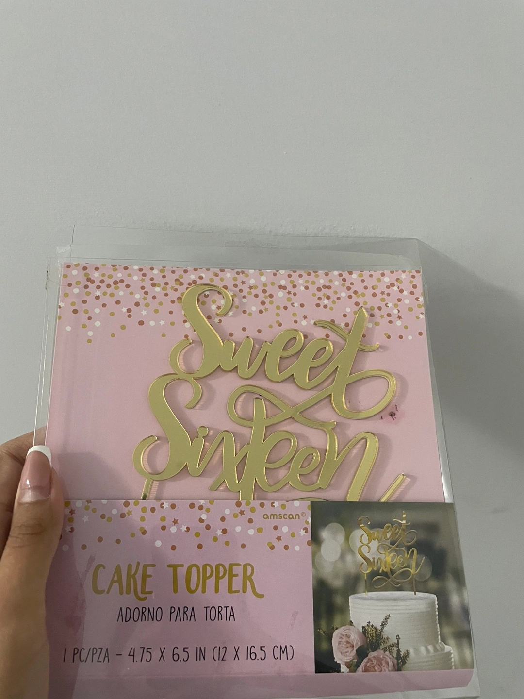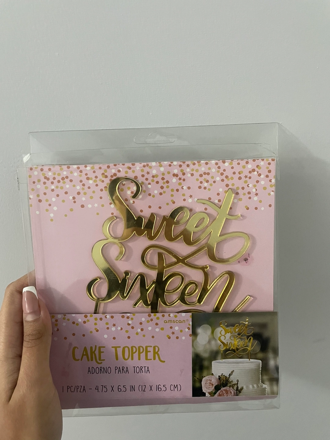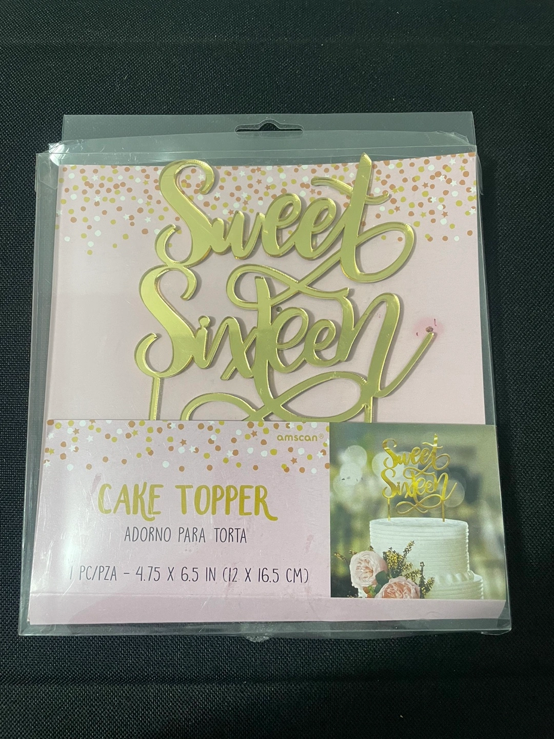 I'm selling a brand new Sweet Sixteen Gold cake topper! It's still in its original packaging and ready to make a sweet sixteen cake extra special. The topper measures 4.75 x 6.5 inches (12 x 16.5 cm).