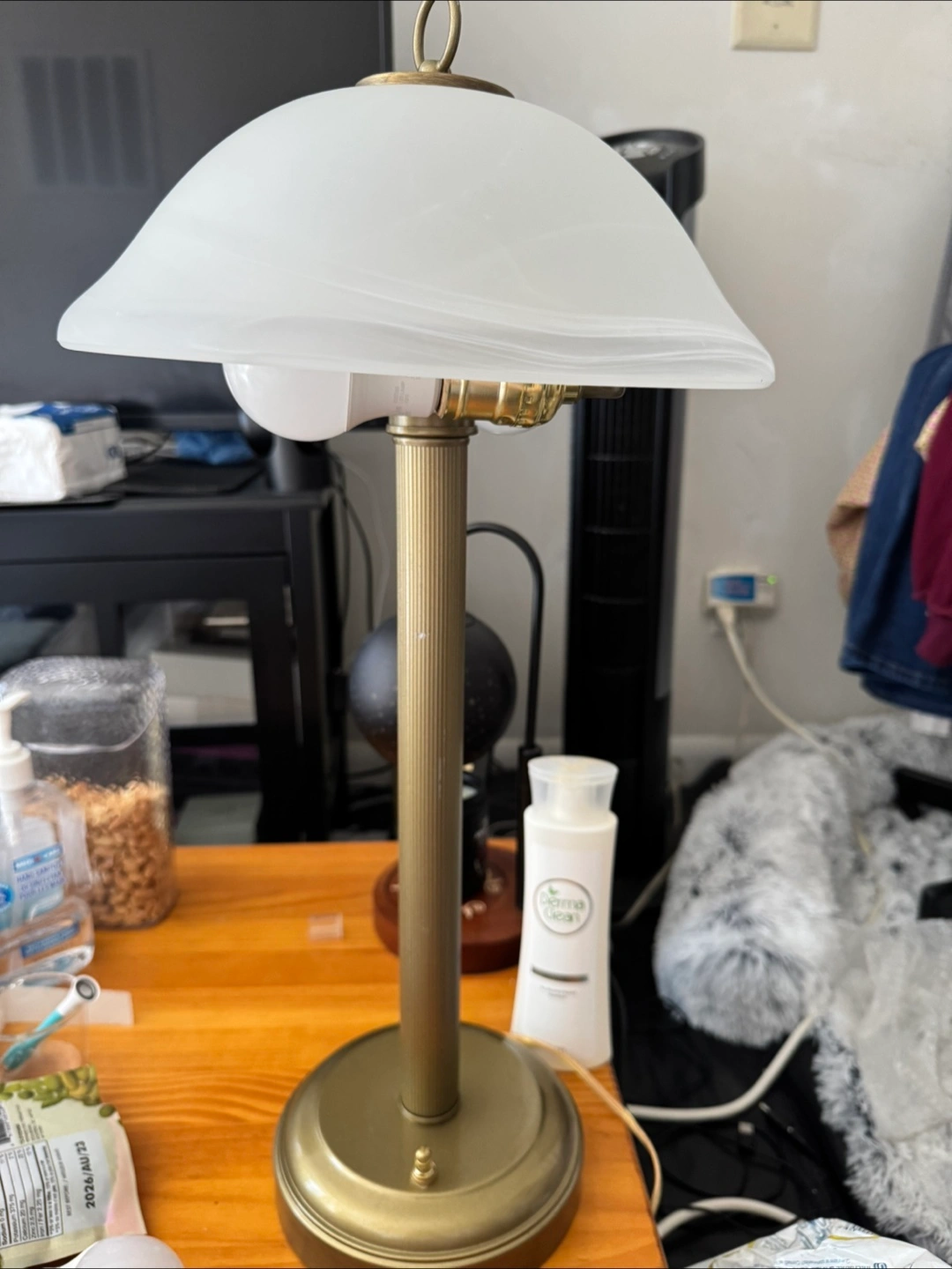 Selling a lovely vintage-style table lamp! It features a brass base and a white glass shade, giving off a warm and inviting glow. It’s in great condition and would look perfect on a bedside table or desk! Modern Gold Brass Table Lamp