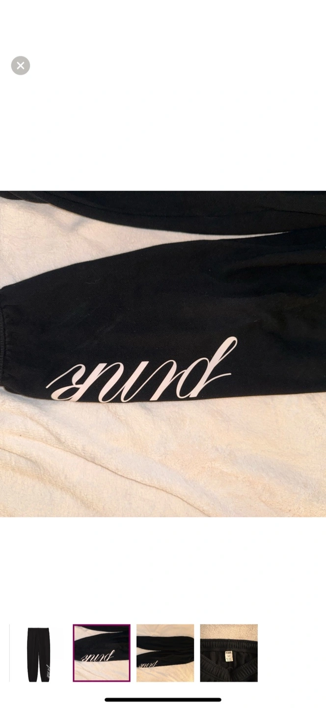 Selling a pair of PINK black jogger pants in size small! They're super comfy and in great condition. The PINK logo is on the leg.