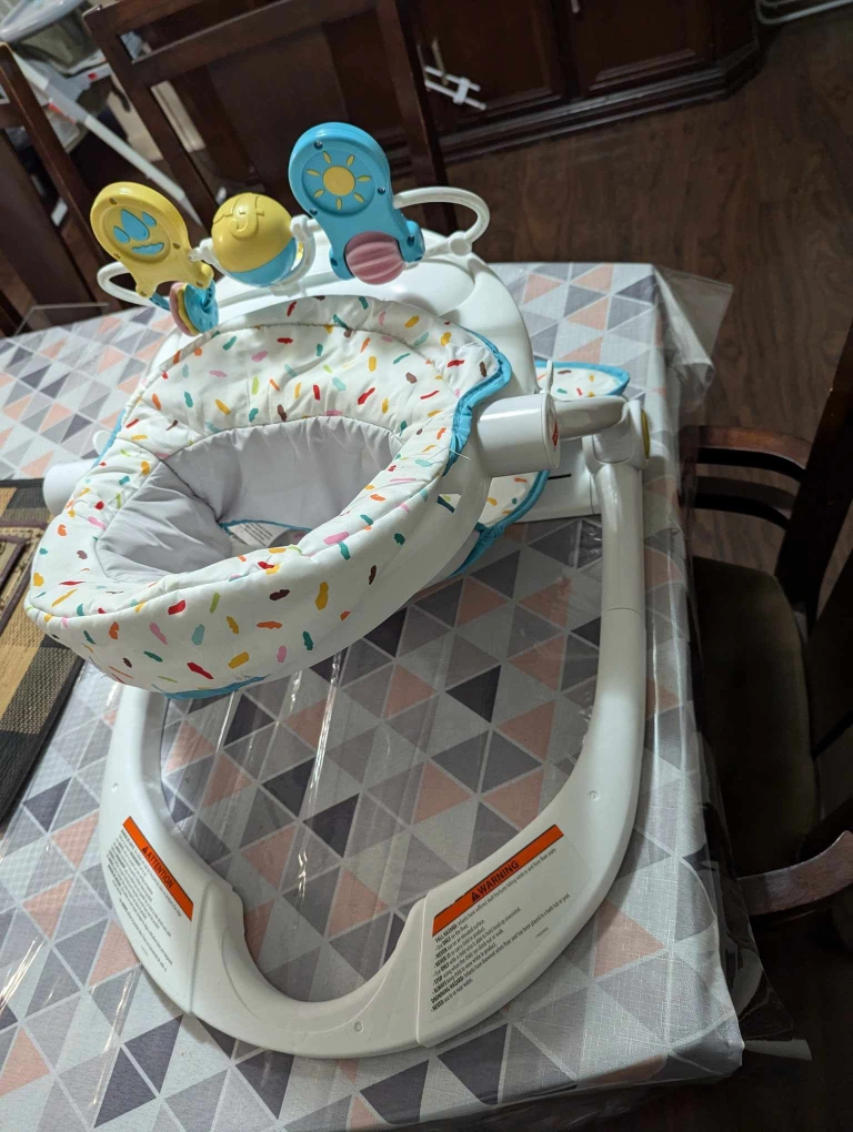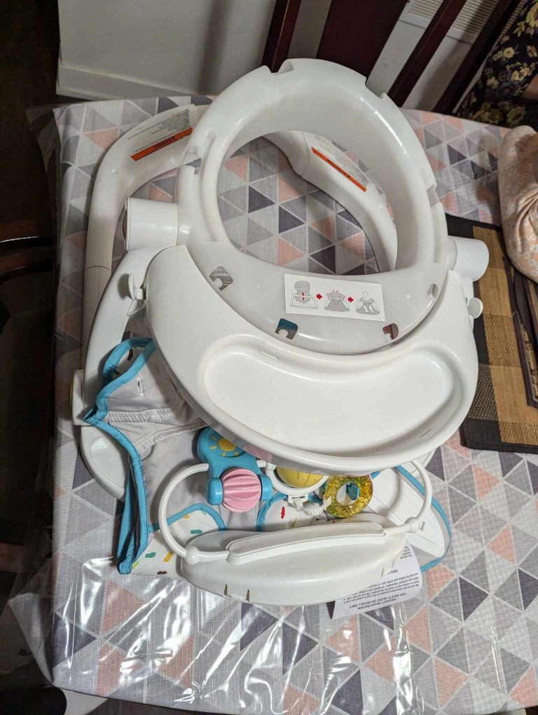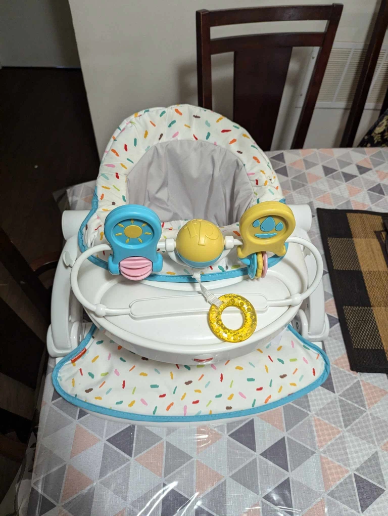Baby activity centre. Features multiple toys and activities. Folds for storage. Suitable for babies who can sit unsupported. This Fisher-Price Sit-to-Stand Activity Center is suitable for babies around 6 to 12 months old, or until they start trying to stand up on their own. It’s designed for babies who can sit up without support. Very Good condition. pick-up Yonge st- Mt pleasant area