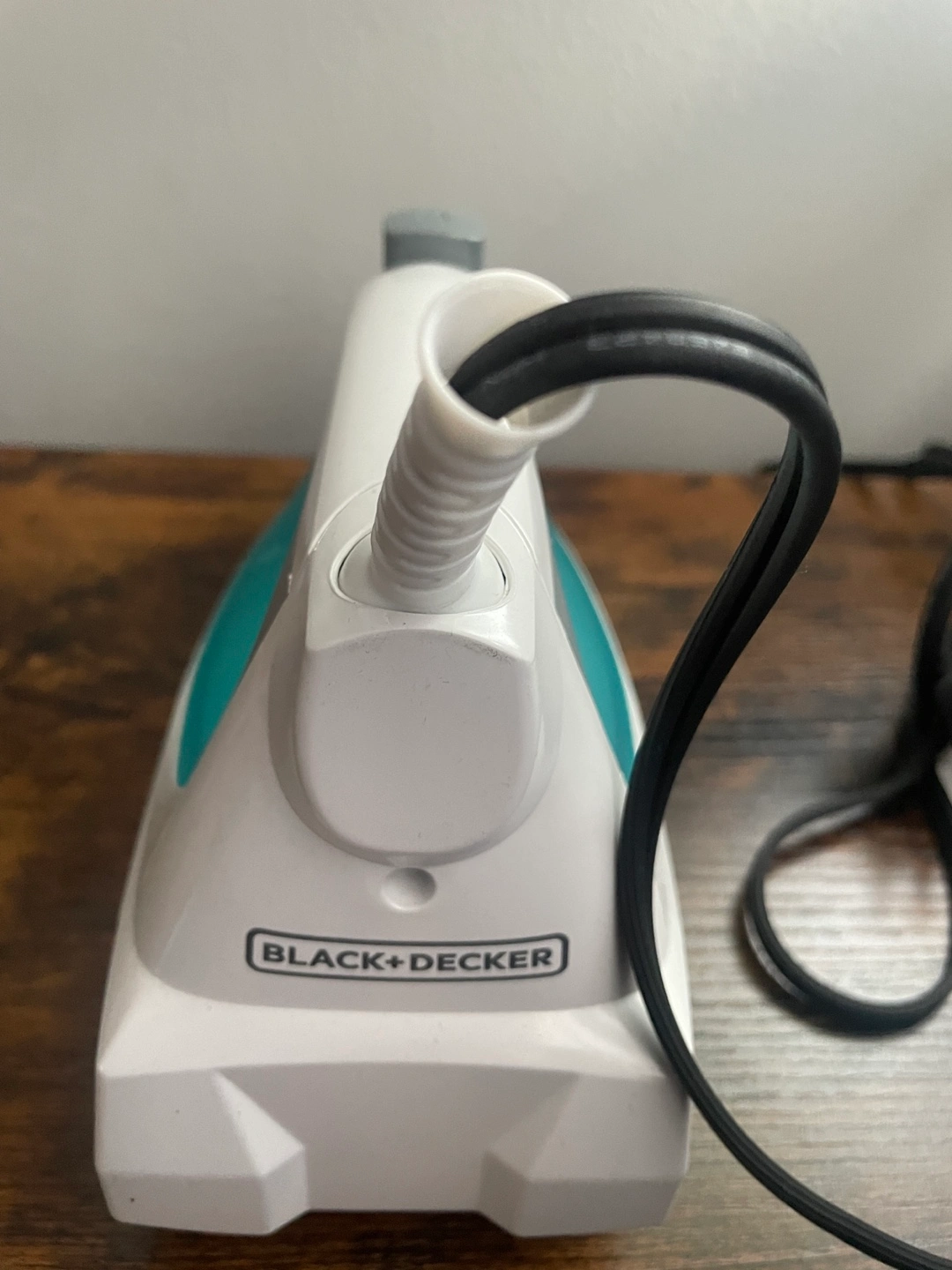 I'm selling a Black+Decker Easy Steam Compact Iron. It's in great condition and ready to help you get those wrinkles out! It's lightweight and easy to use, perfect for quick ironing jobs or travel