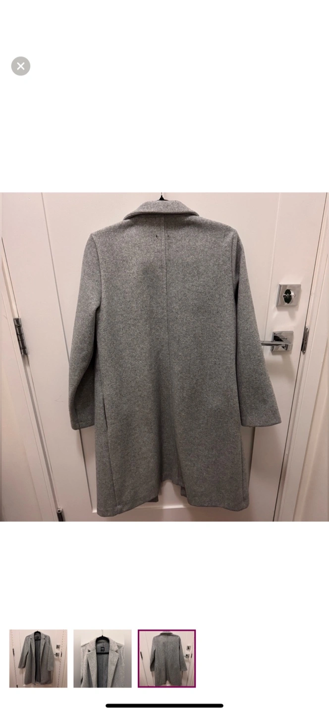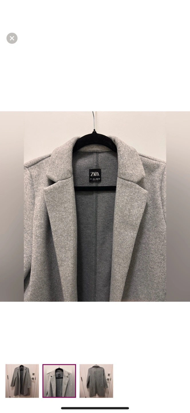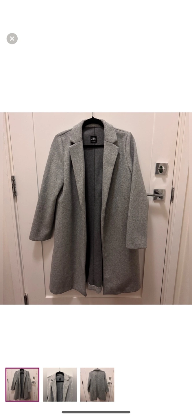 Selling a Zara coat in a lovely grey colour! It's in great condition and ready for a new home. Perfect for layering. Almost like brand new, a thinner coat best for fall and spring. Its a large but I am a medium and it fits great as well.