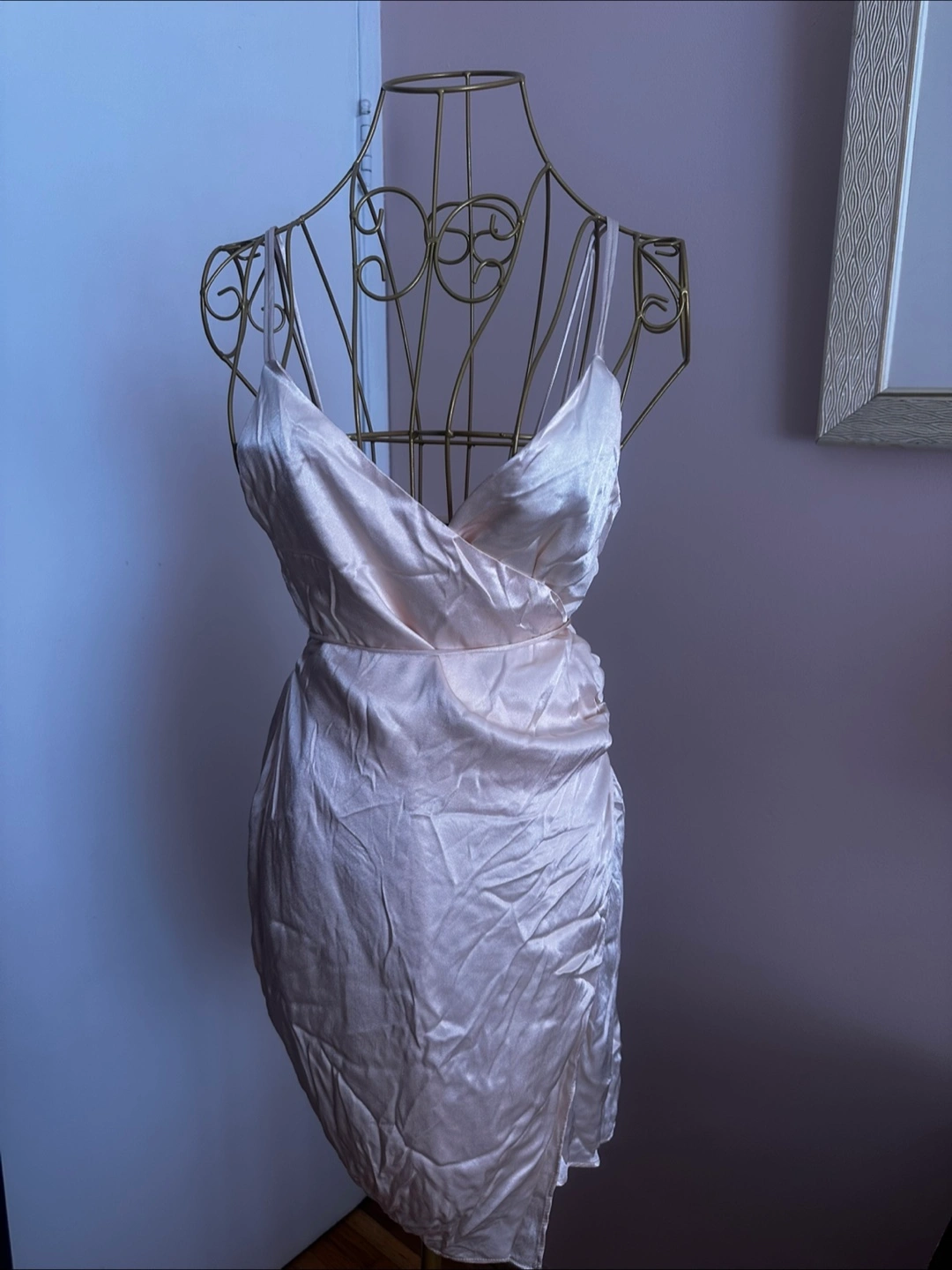 Downsizing! This obviously needs a press or steam but is so sexy on. Never worn (I have too much!!) - beautiful light pink and gathered detail at the waist