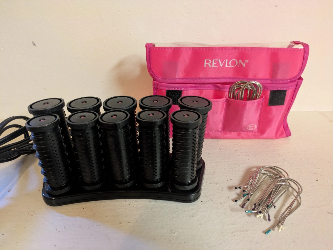 Revlon curls to go 10 piece electric curler hot rollers set. With cool touch tips. Get ready on the go with travel case included.