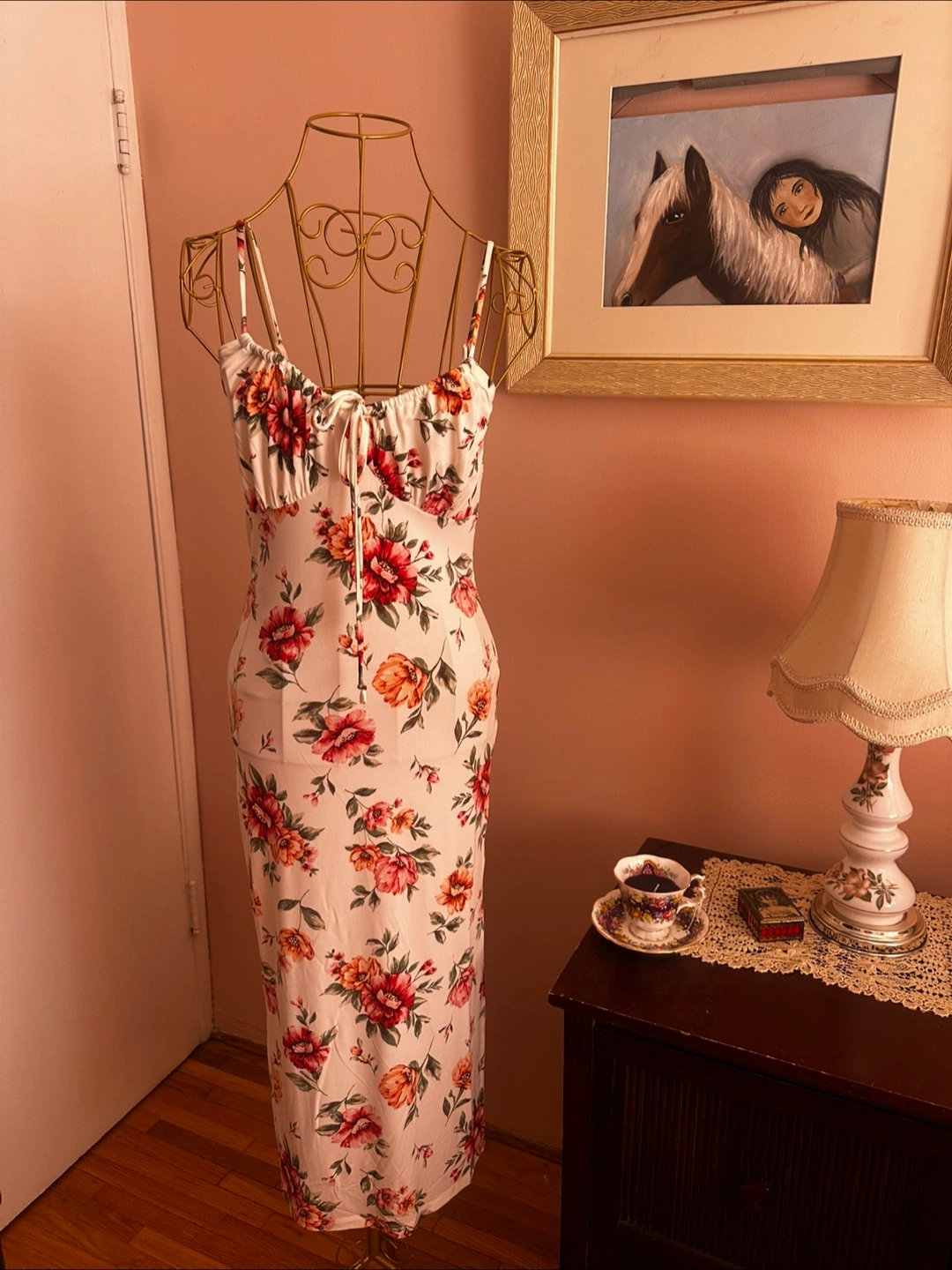 Selling a Fashion Nova floral lace up midi dress in size medium. Never worn - still has tags. Bought the wrong size