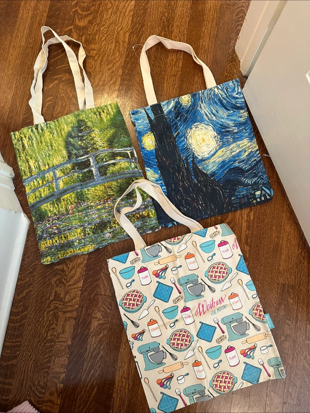 $5 each or $10 for all 3- printed tote bags