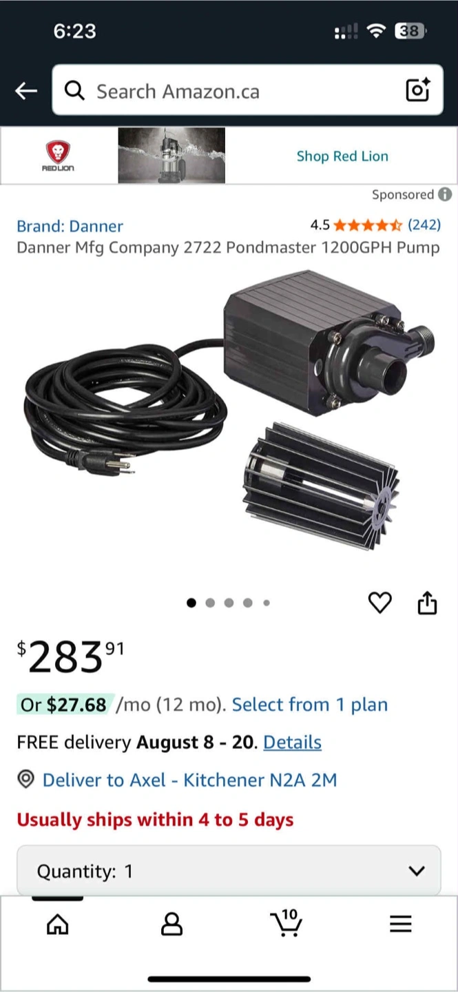 Selling a Danner Mfg Company 2722 Pondmaster 1200GPH Pump. It's in great condition and ready to go! Originally bought for $283.91