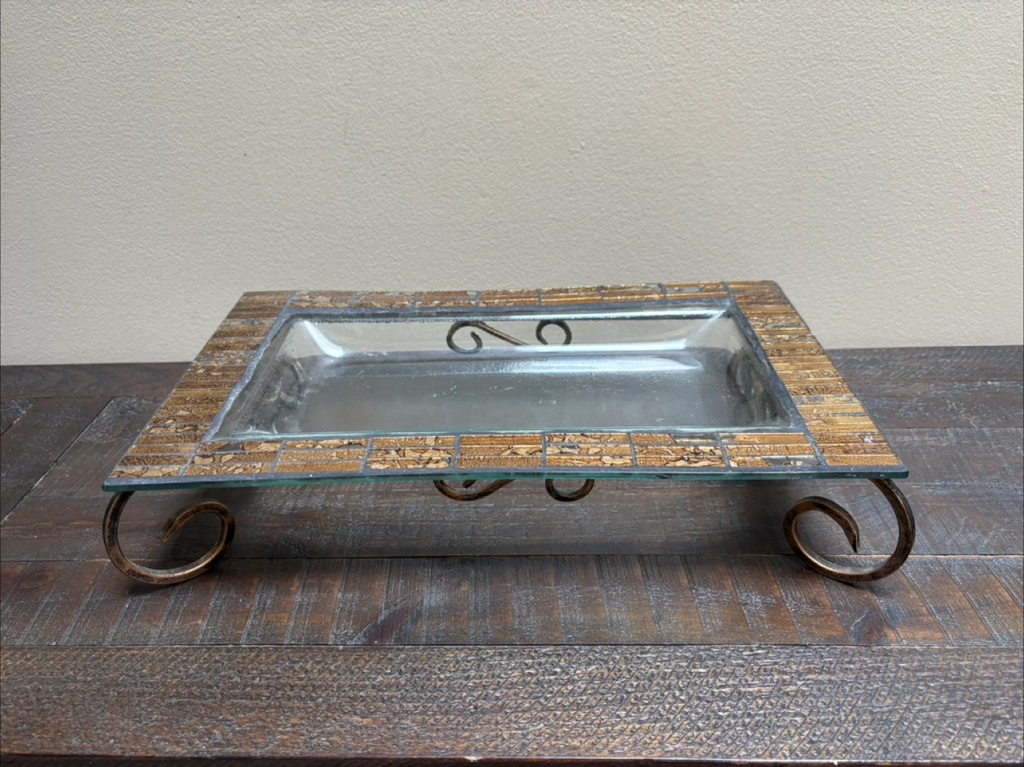 Mosaic Glass Serving Tray with Metal Stand