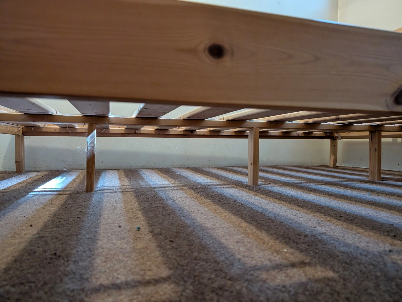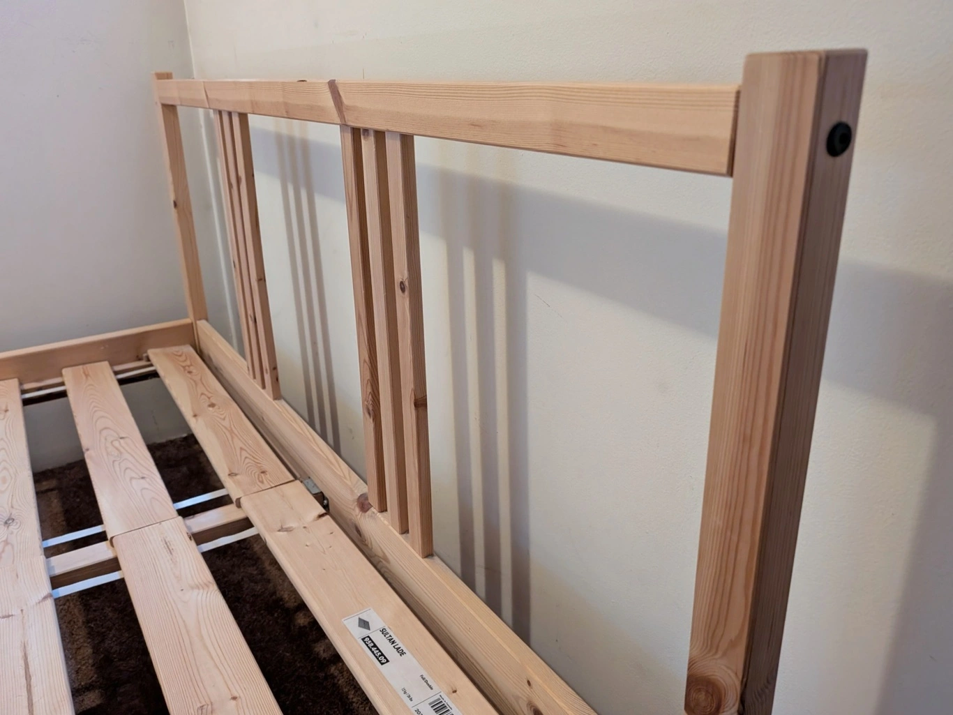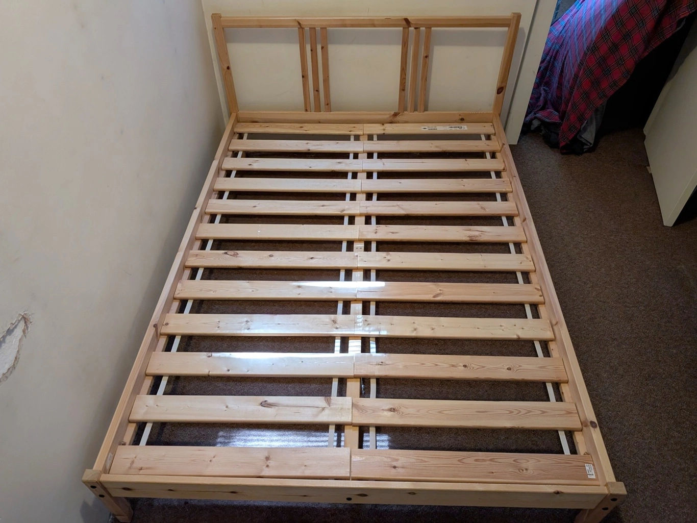 Ikea Fjellse full/double pine wood bed frame with Sultan Lade slats. Purchased approx 12yrs ago, used in same house since. No structural issues or damage beyond a few tiny scrapes here and there, has been sturdy. Will be disassembled for pickup.