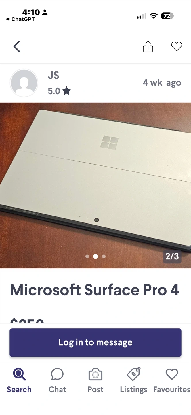 Microsoft Surface Pro 4 tablet. It's silver in colour. Includes the original charger and a black protective case.