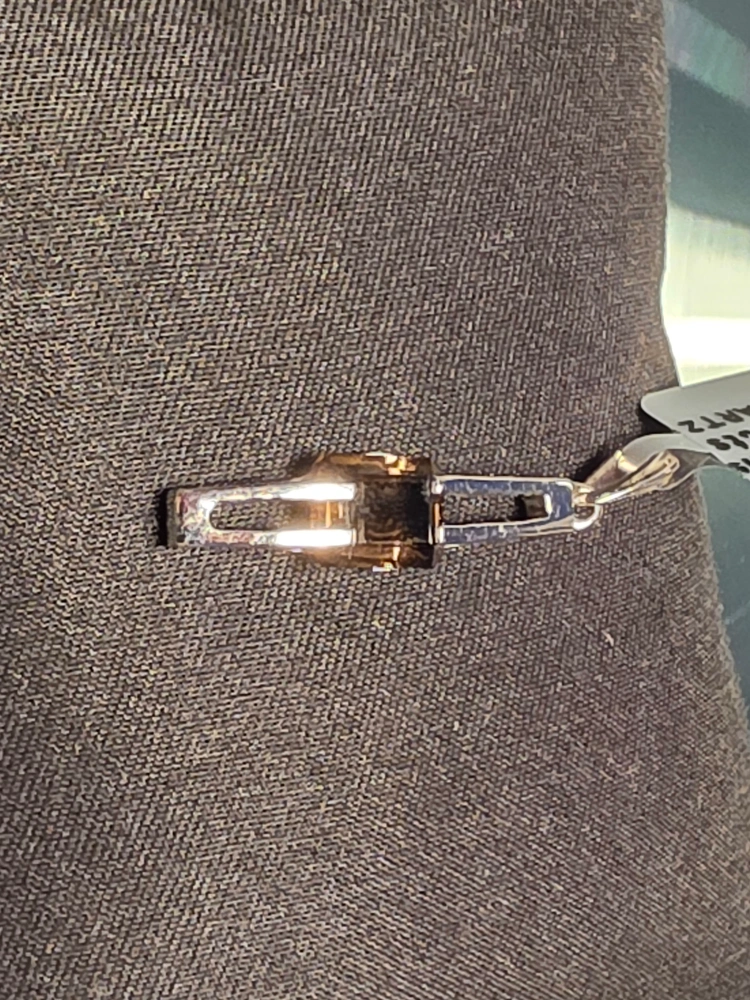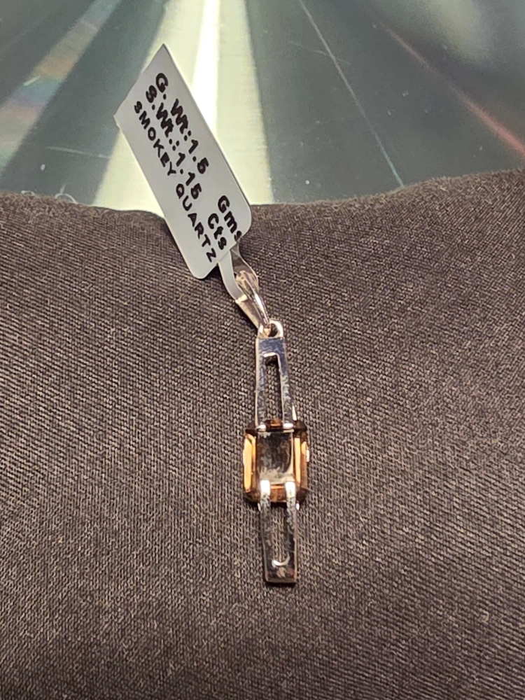 96Silver smokey quartz pendant. The tag indicates the following: - G. Wt: 1.5 Gms - S. Wt: 1.15 Cts It's a beautiful piece!