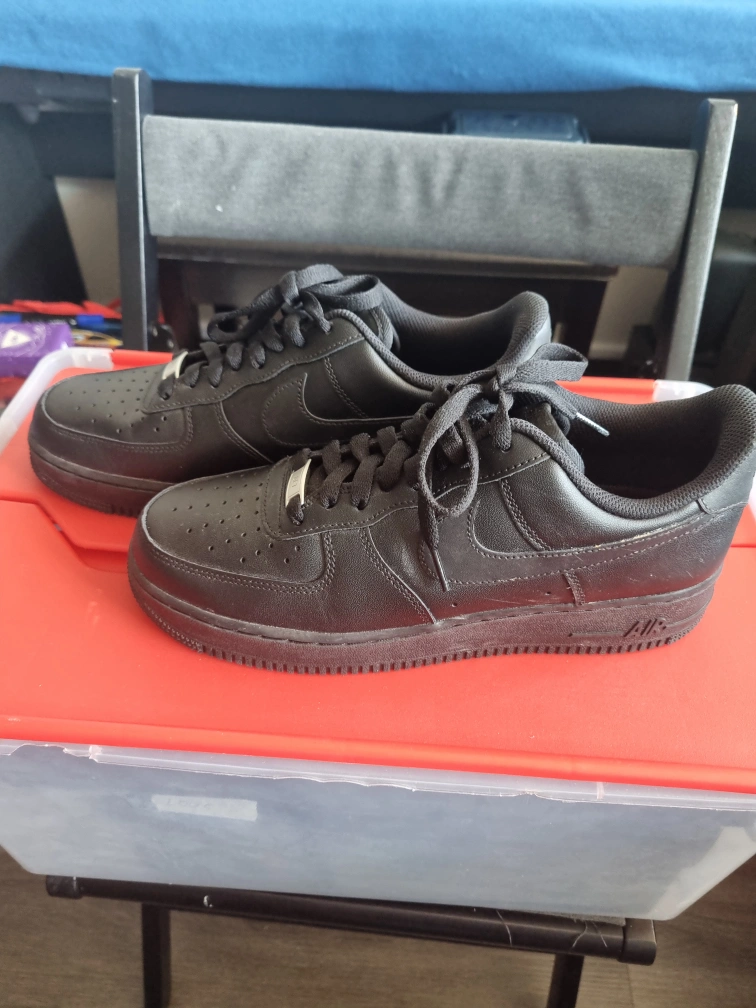 Selling a pair of Nike Air Force 1 Lows in black. They are in good condition and ready for a new home! Size is US 9