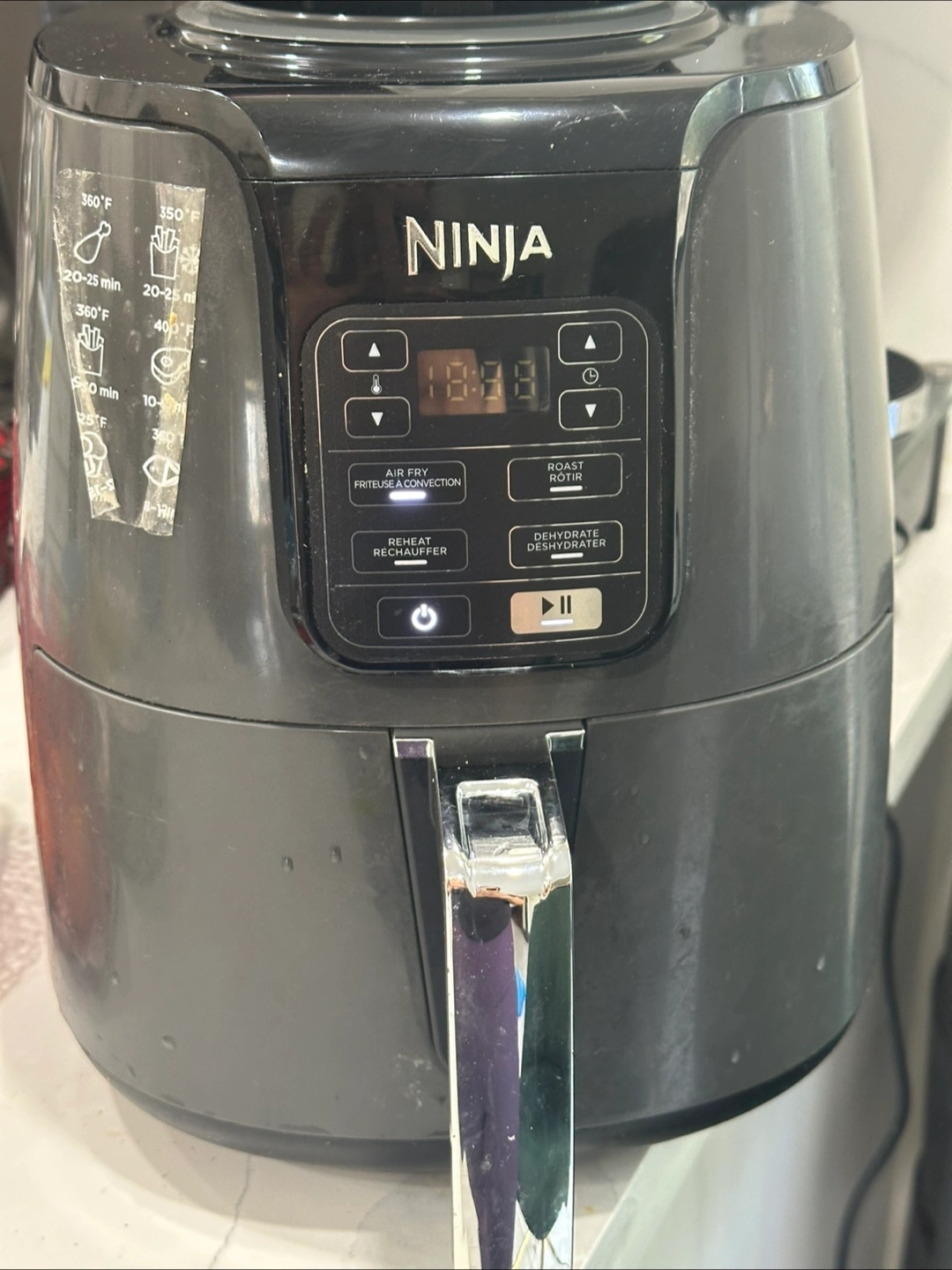 I'm selling a Ninja Air Fryer in great condition! It's perfect for cooking up crispy fries, chicken wings, and more. It has multiple functions including air frying, roasting, dehydrating, and reheating. It's easy to use and clean, making it a great addition to any kitchen