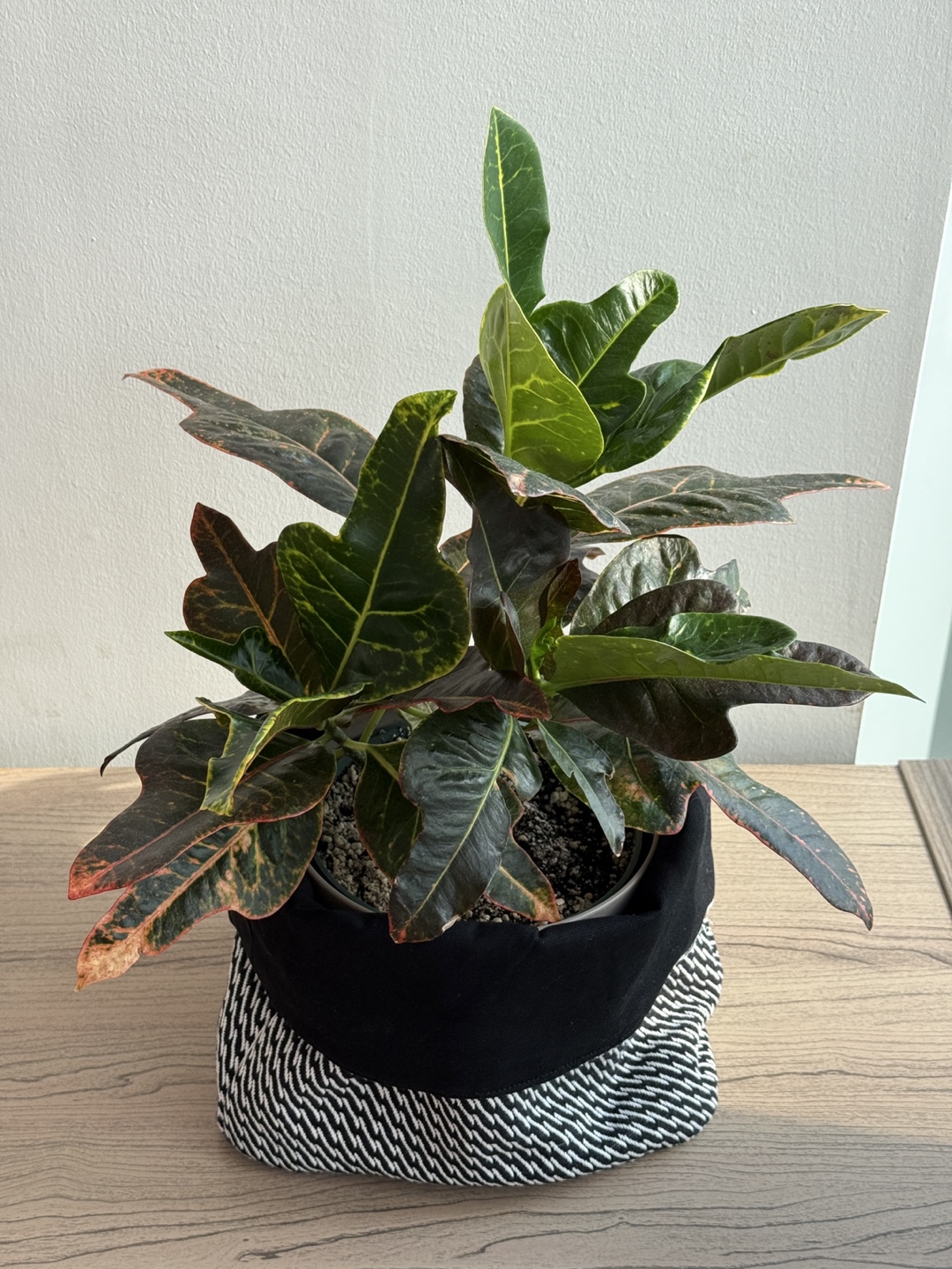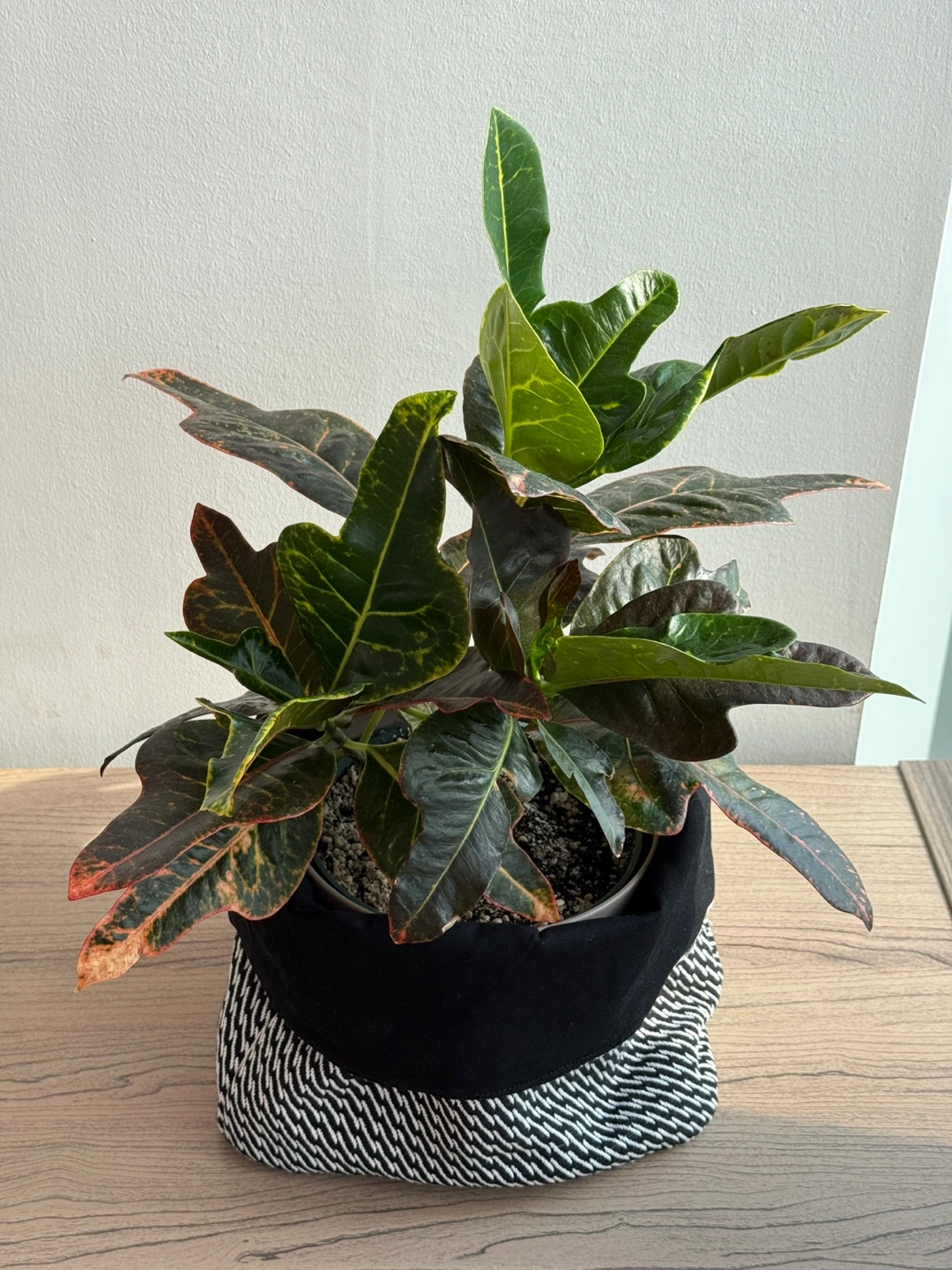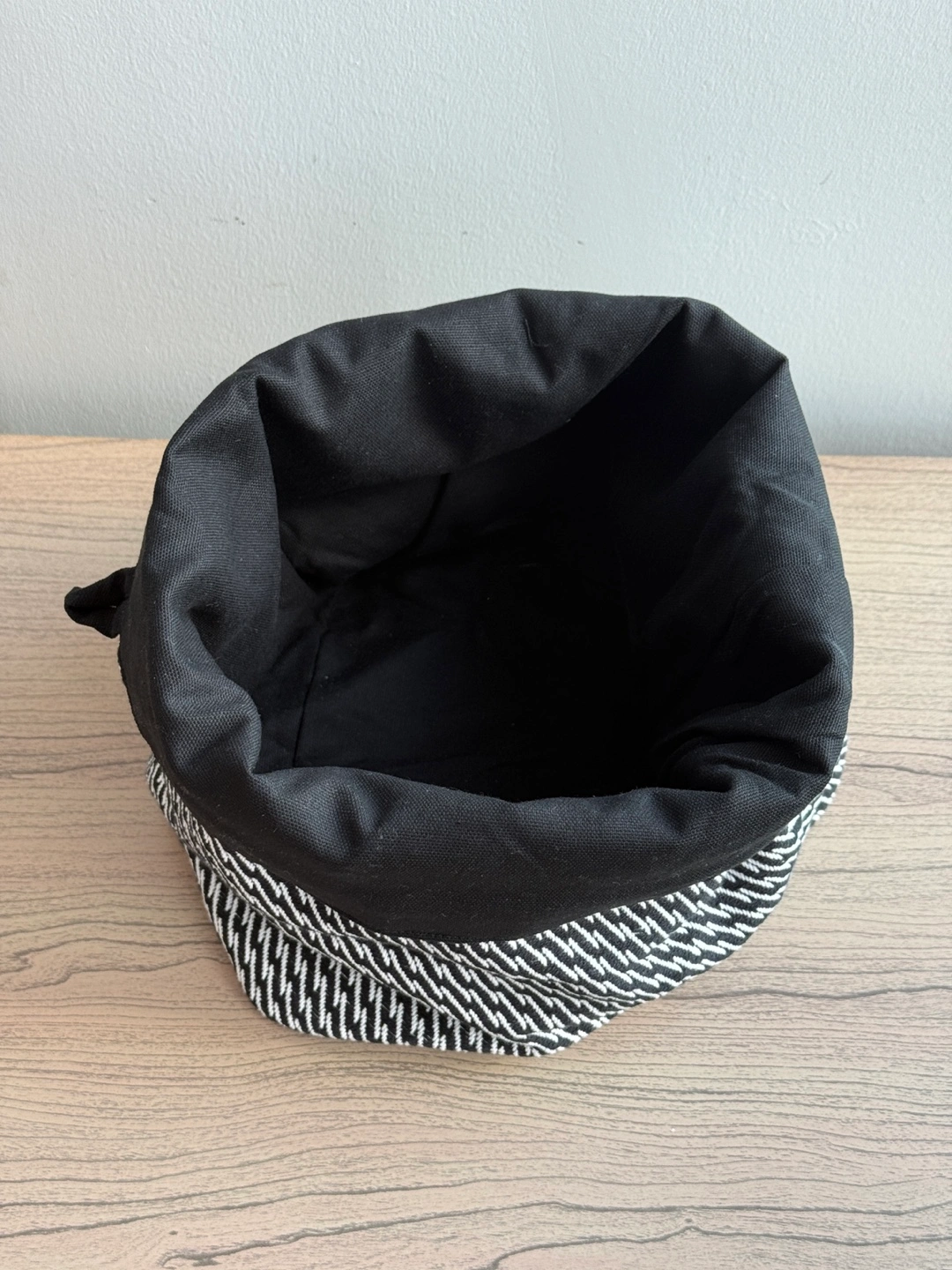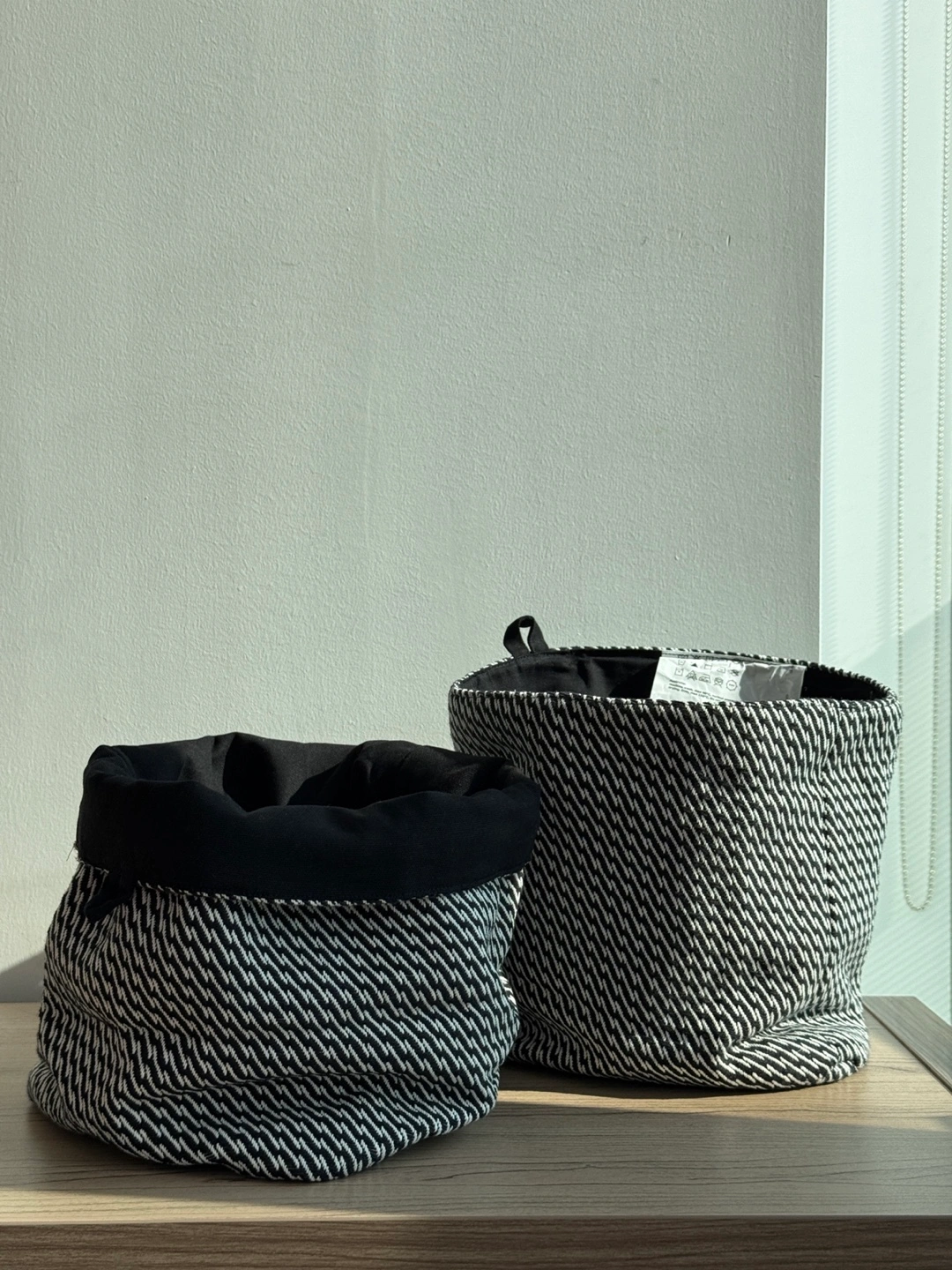 Two stylish and versatile IKEA VEKFISK fabric bread baskets in black and white. Perfect for organizing, storing, or even as decorative plant covers.