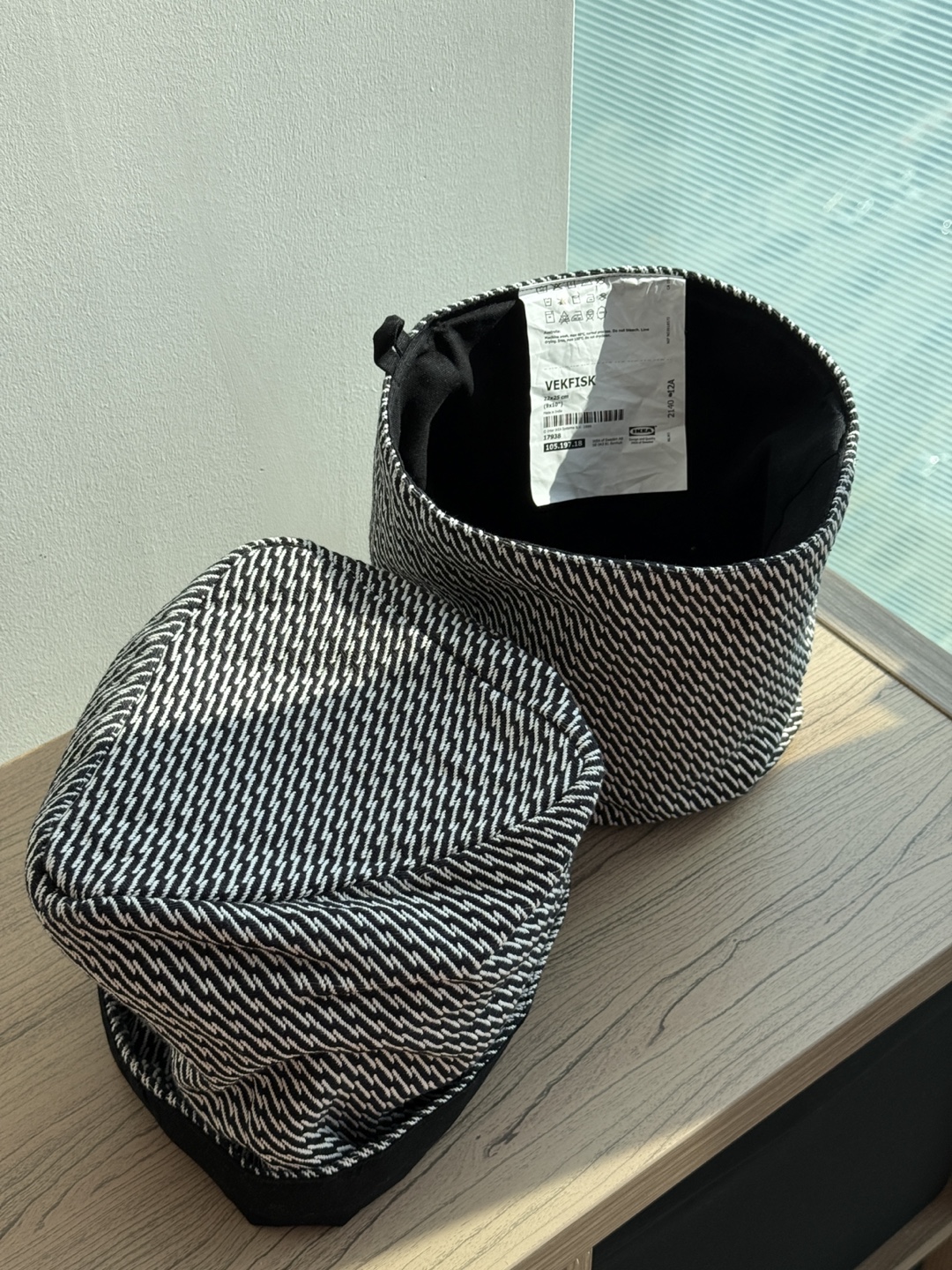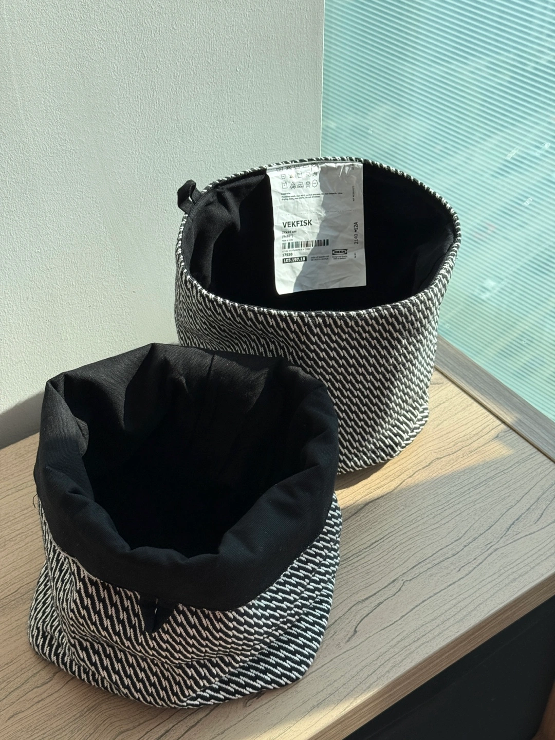 IKEA VEKFISK Fabric Baskets – Black/White (Set of 2)