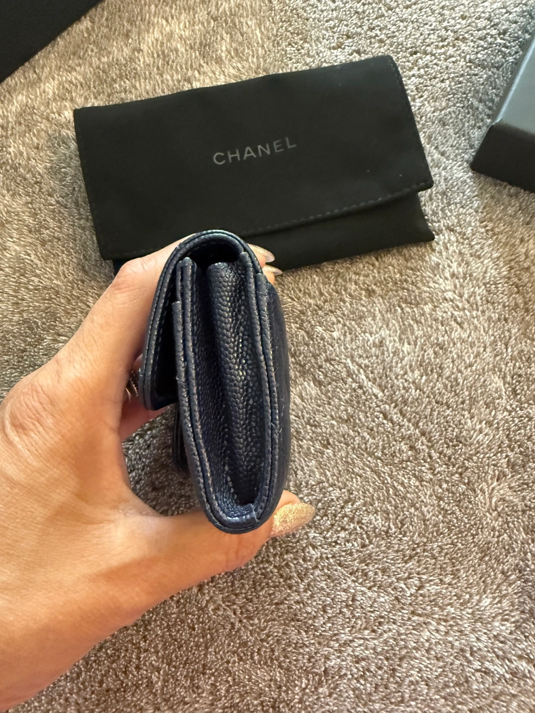 Selling a beautiful Chanel card holder in caviar leather! It's in great condition and comes with the box. This stylish accessory is perfect for keeping your cards organized with a touch of luxury
