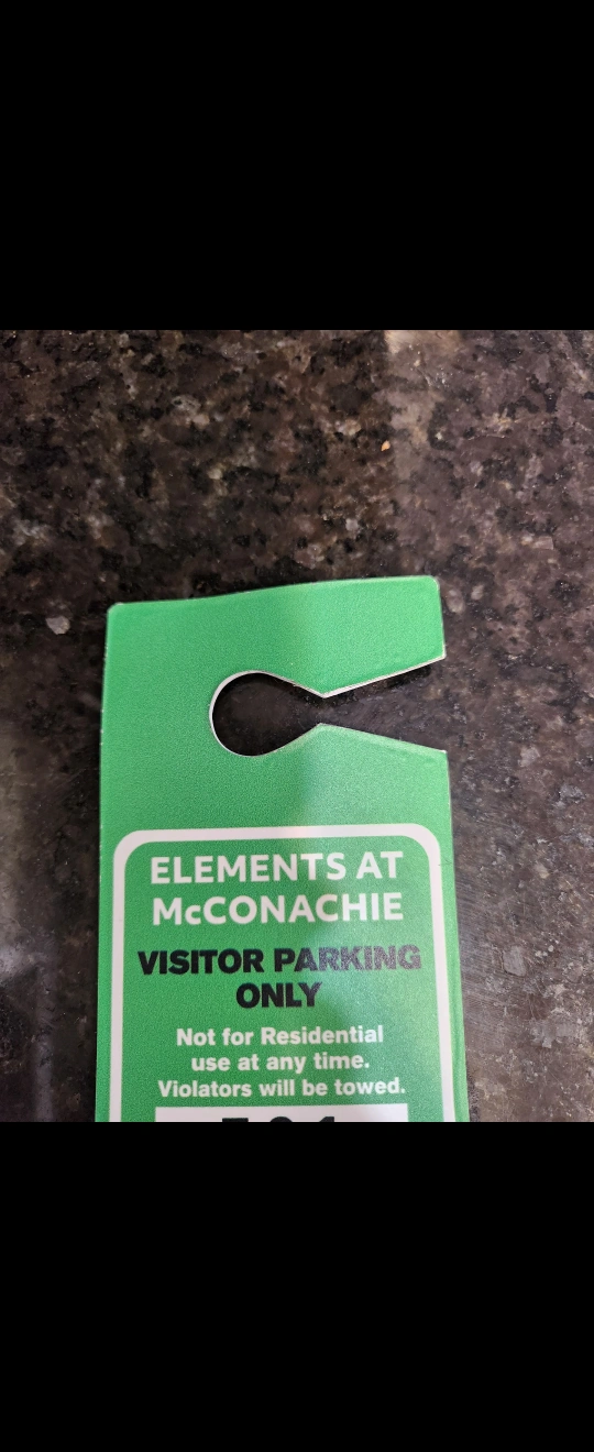 Selling a visitor parking pass for Elements at McConachie. It's for visitor parking only and not for residential use. Violators will be towed! i have 2. 1 is missing a tad piece of the hook. But can still be used and the other one is mint, and that one is $70 dollars or best offer