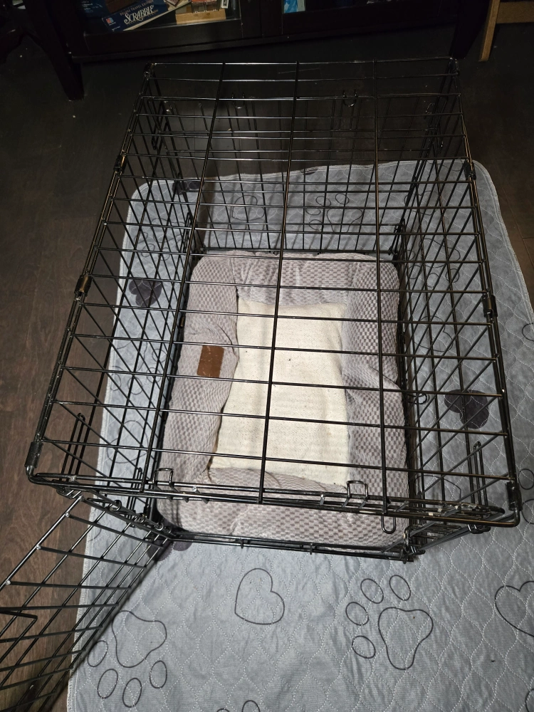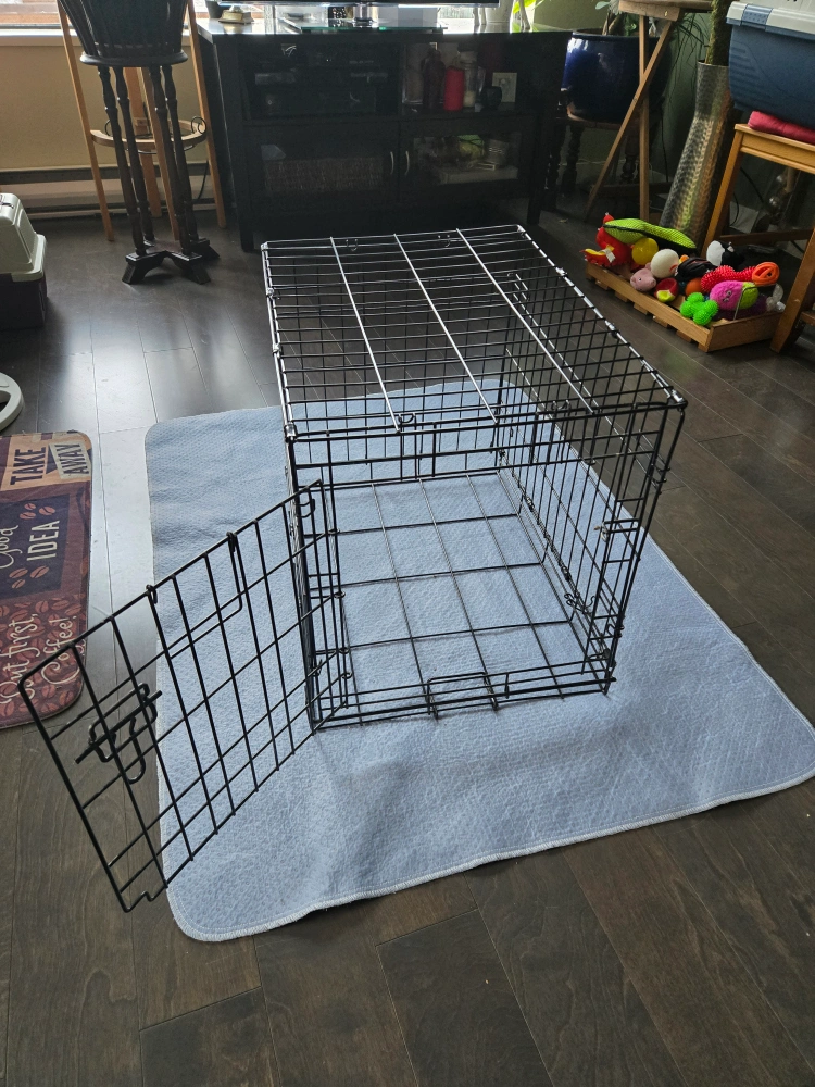 Foldable dog crate.