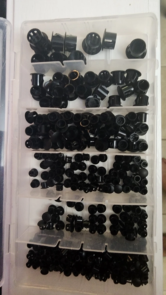 I have a container full of assorted black plastic hole plugs. Great for various projects and repairs! They come in different sizes and styles, as you can see in the photos.
