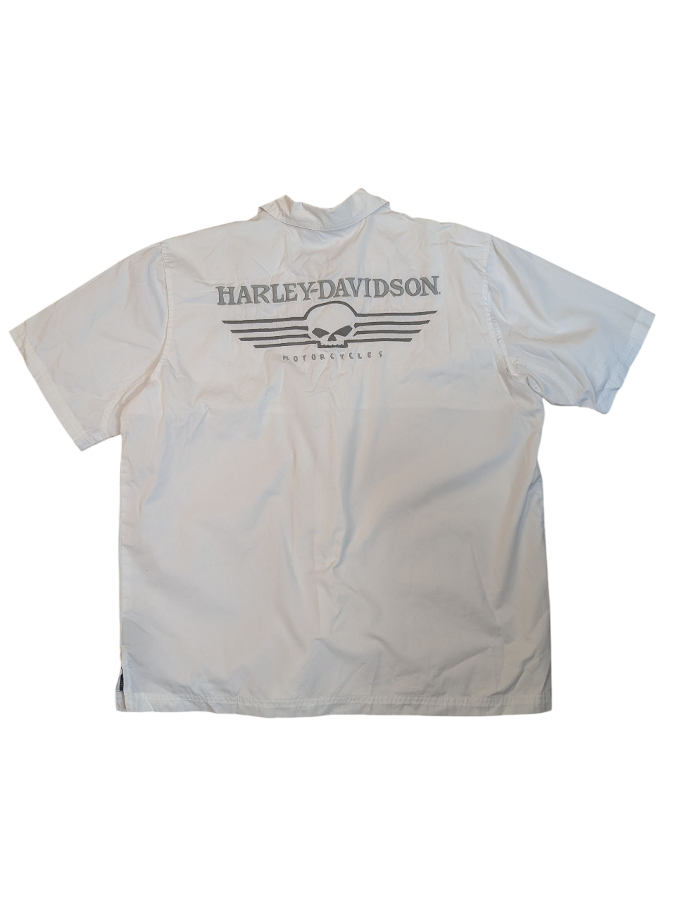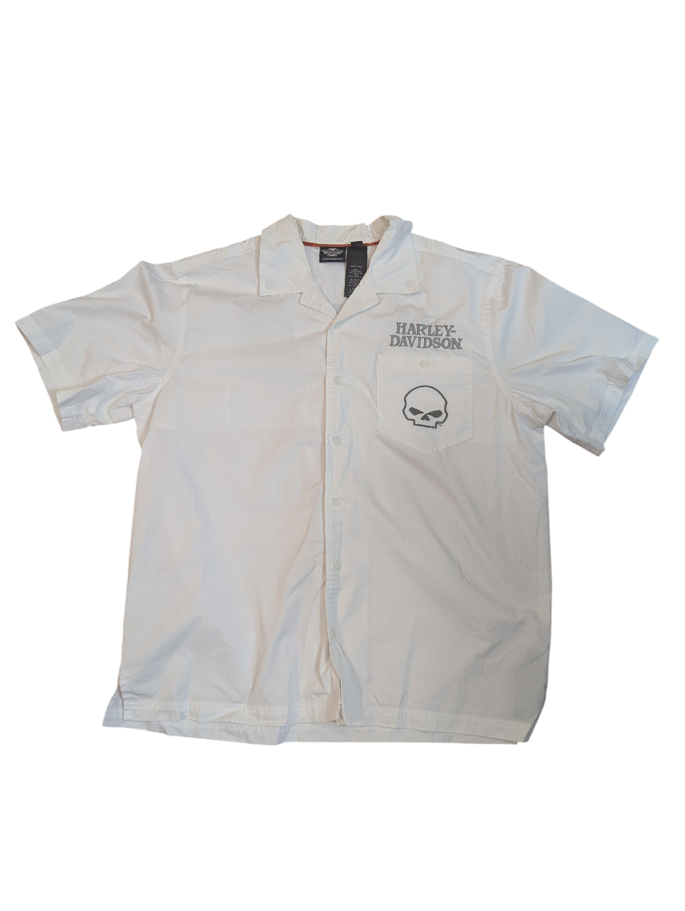 LIKE NEW Harley-Davidson Men's XL Short Sleeve Button-Up Shirt – White w/ Skull Logo Front & Back