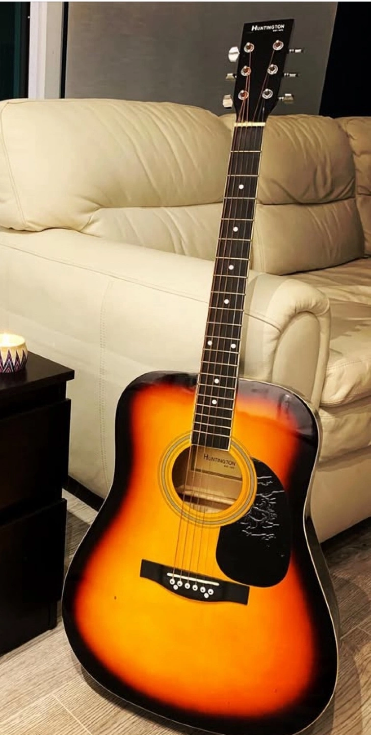 Selling a Huntington acoustic guitar in good condition. It comes with a case to keep it protected. Perfect for beginners or anyone looking for an affordable guitar to play around with. Feel free to reach out if you have any questions!