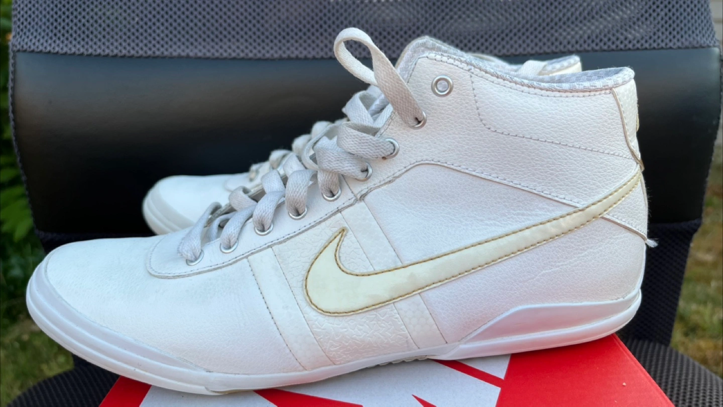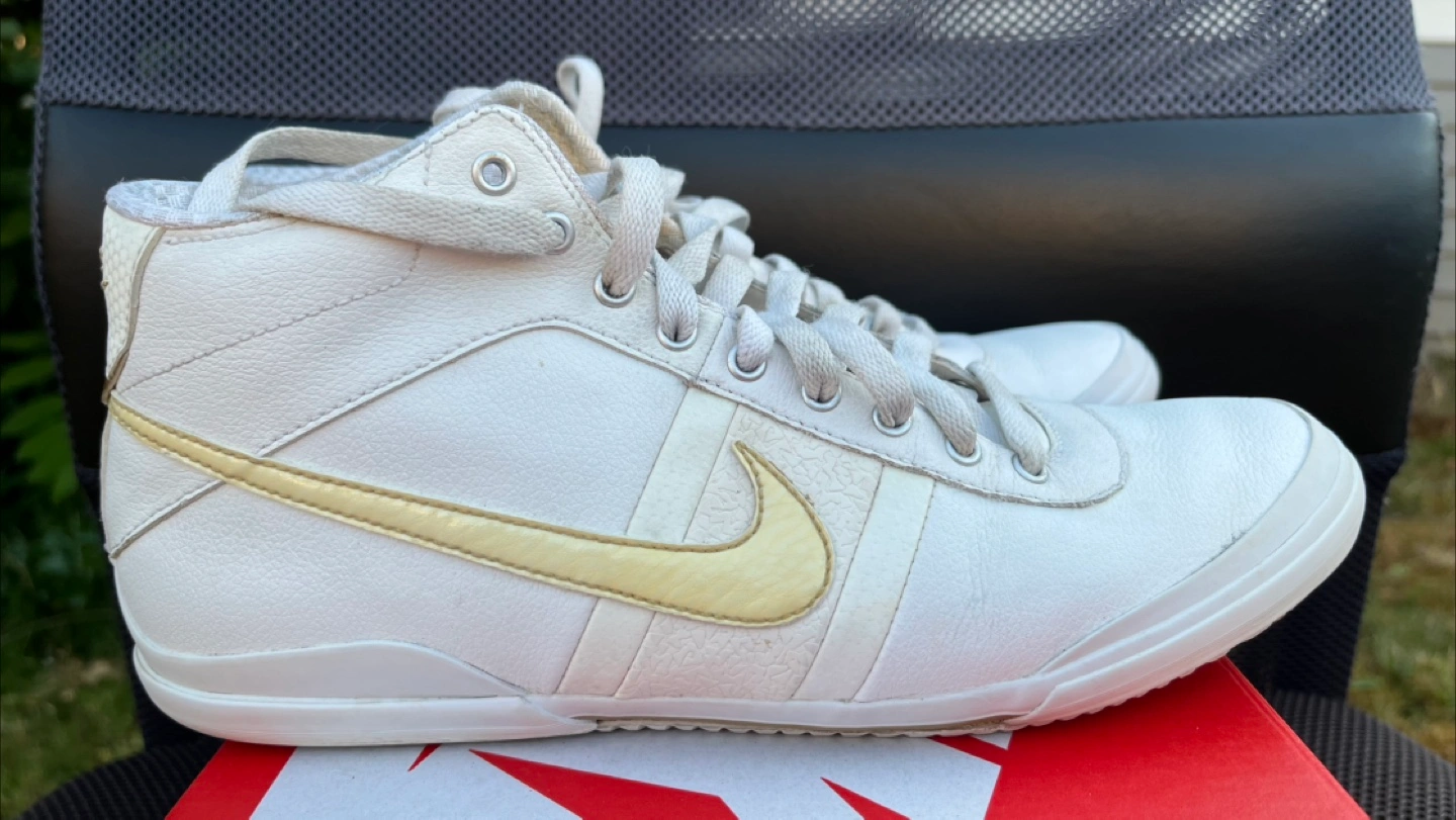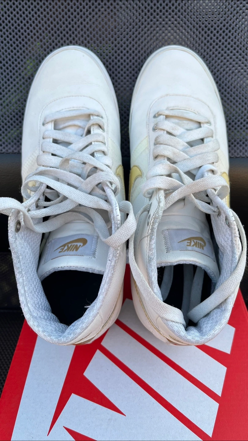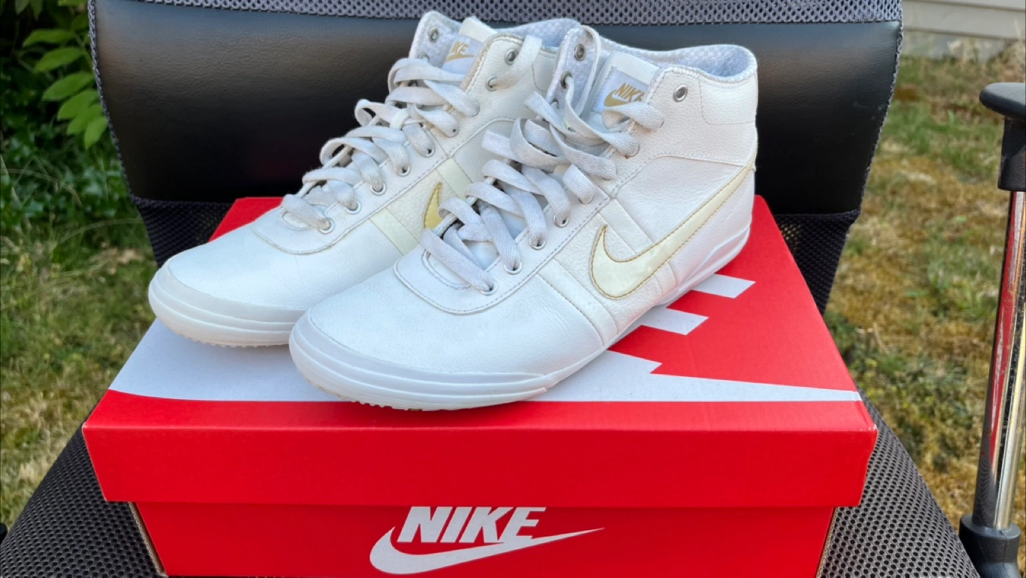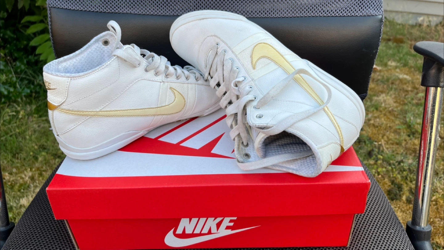 I told my wife not to sell these because I think Nike doesn’t make many shoes of this quality anymore. She disagreed, citing she has too many shoes anyways. But why get rid of *these* ones? She insisted, even though she has hardly worn these and have been in storage. Not going to argue, so here she has a pair of soft full leather Nike Fin’Star Mid in white. The shoe looks simple enough but there are so many details that you have to see this shoe in person to appreciate it. 360 degrees clean and from a pet and smoke free home. Only $20. No box. Size 7.5