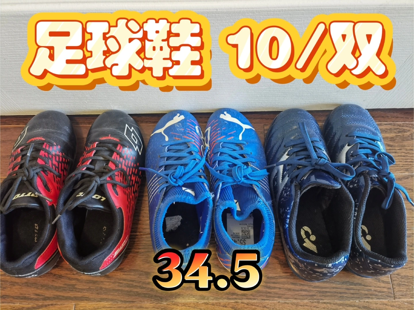 Selling a lot of soccer cleats in size 34.5. There are three pairs in varying conditions. Great for kids who are just starting out!