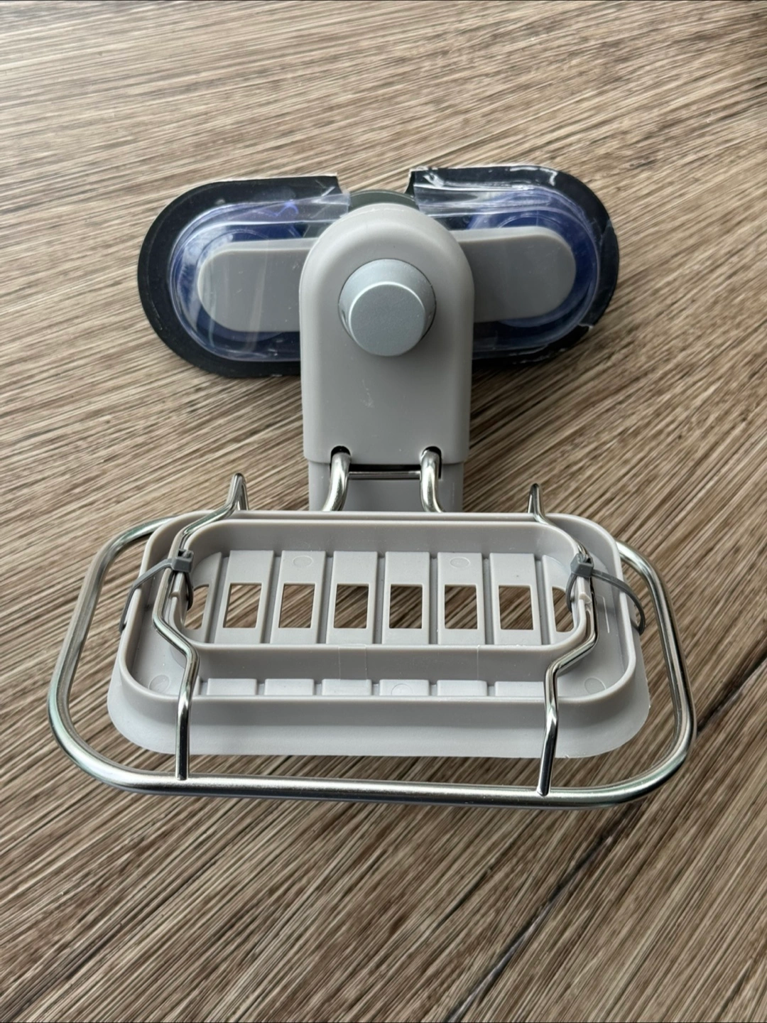 Keep your shower or sink area tidy with this handy suction cup soap or sponge holder! It's brand new and ready to help you organize your bathroom or kitchen. The grey colour will fit in with any decor