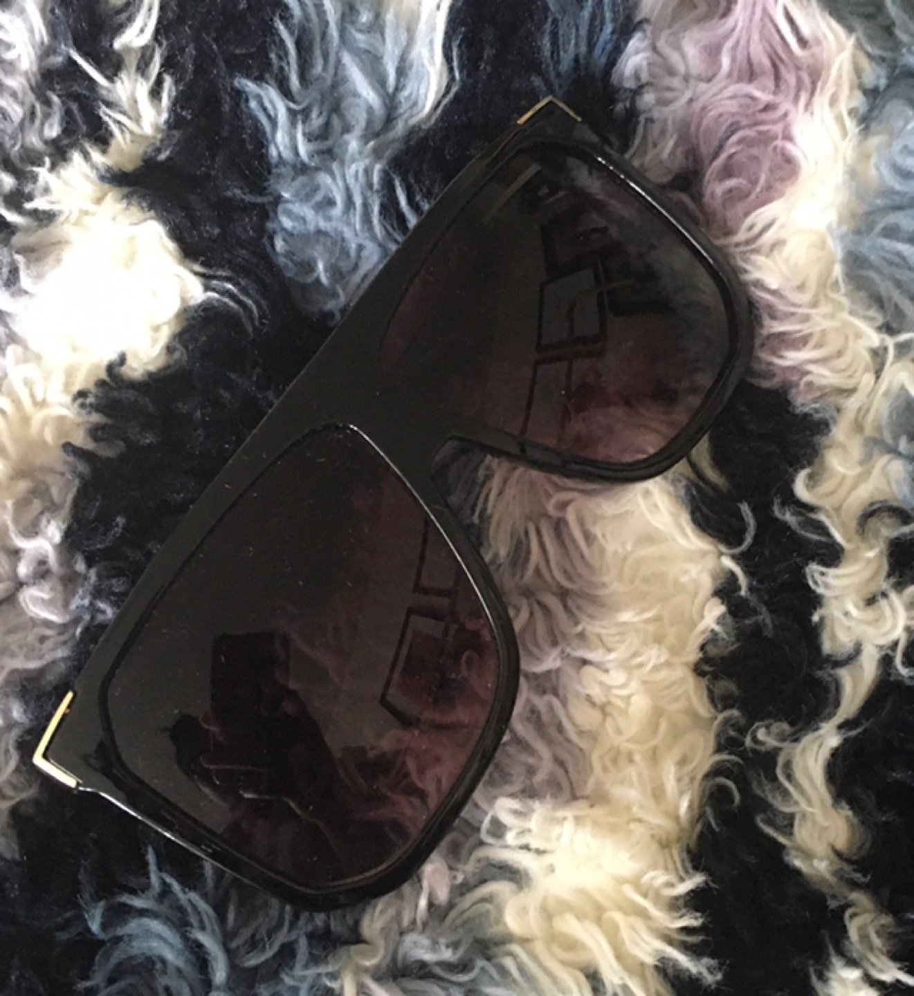 Selling a pair of black oversized Aldo sunglasses. They're in great shape and ready for a new owner! The frames are black with gold accents. Perfect for sunny days! 6” x 6” frames.