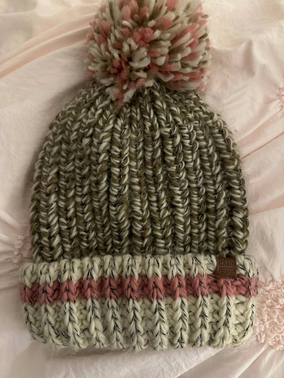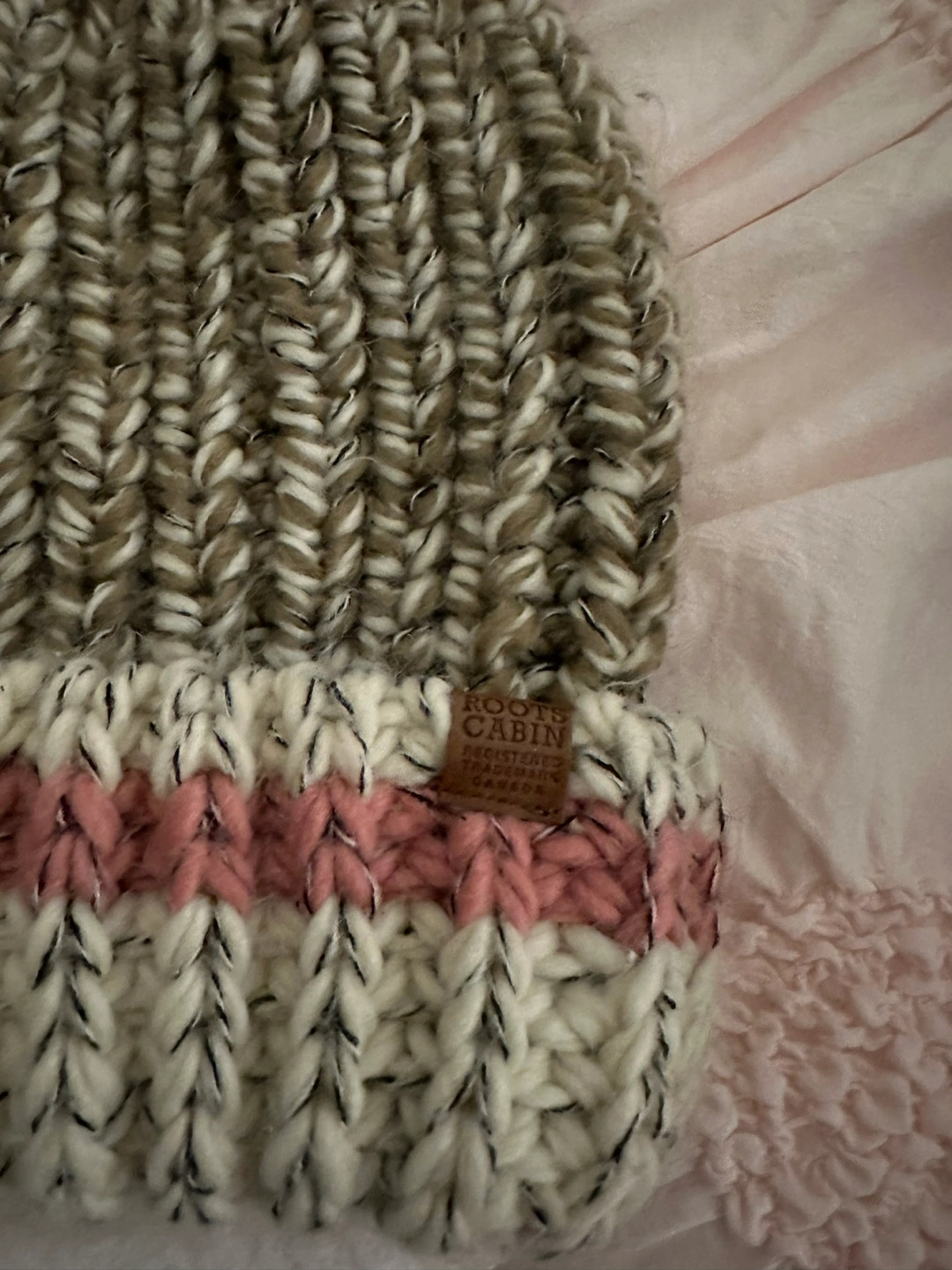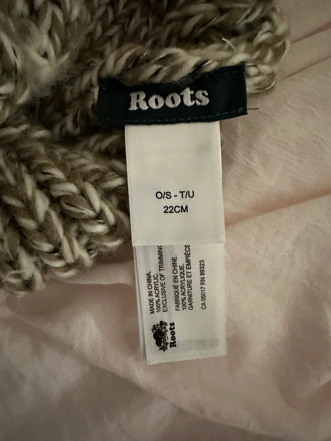 Cozy up with this adorable Roots Cabin toque! It features a cute pom pom and a stylish knit design. The size is O/S (one size), and it's made of 100% acrylic.