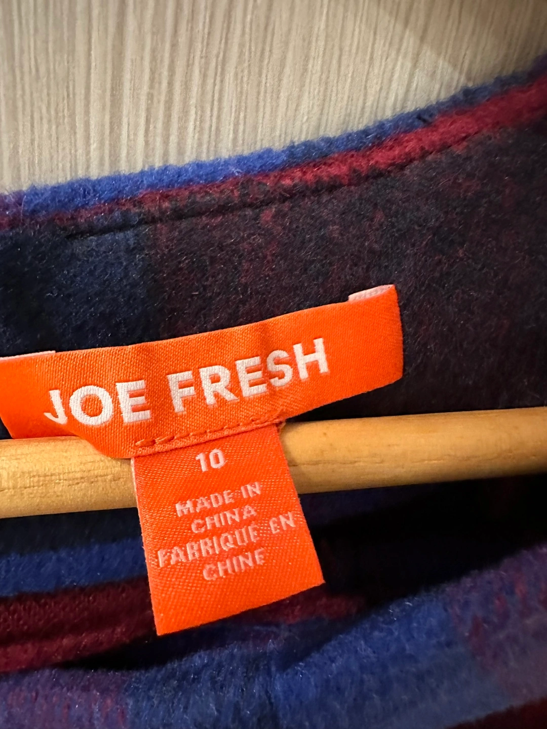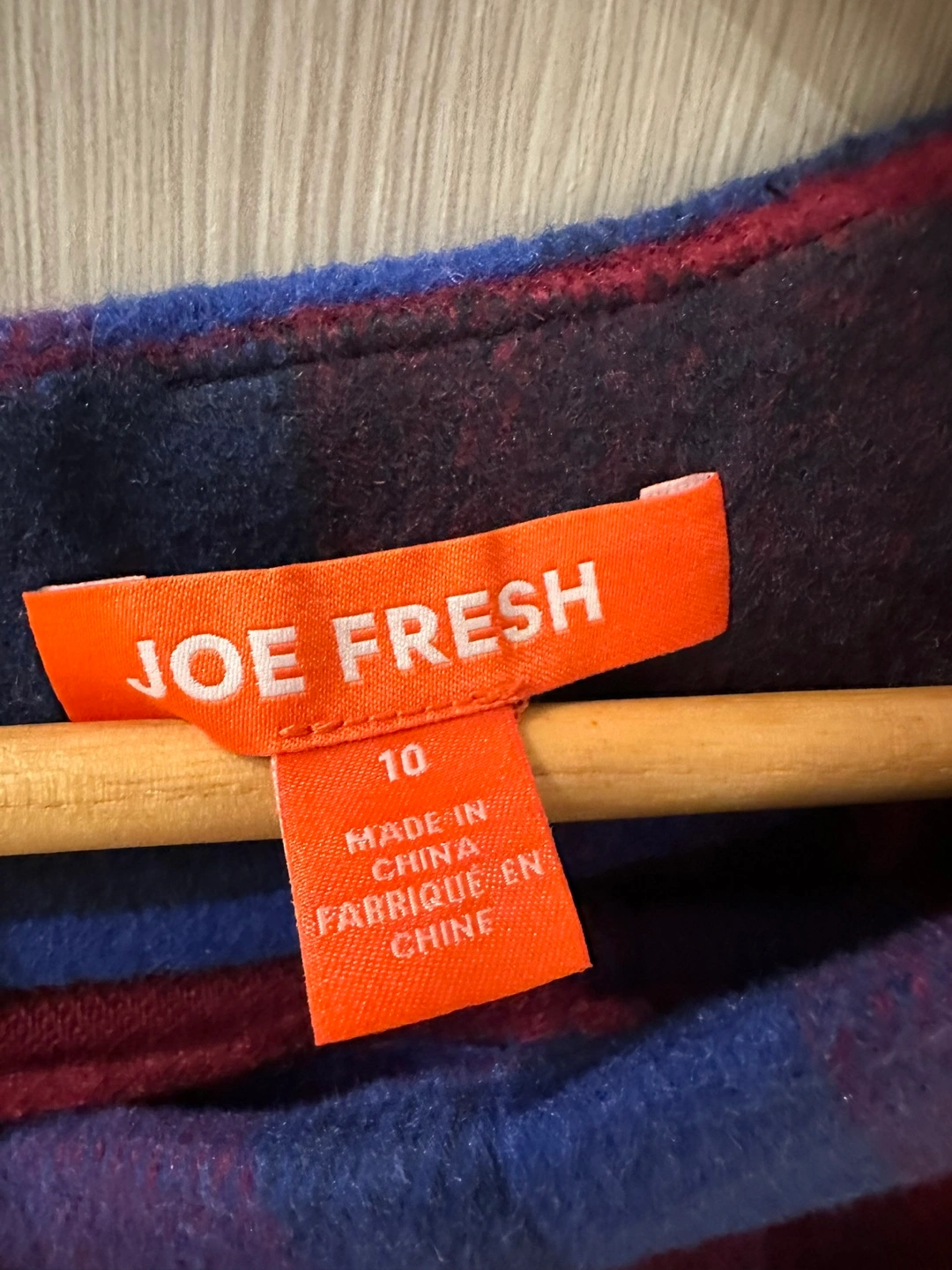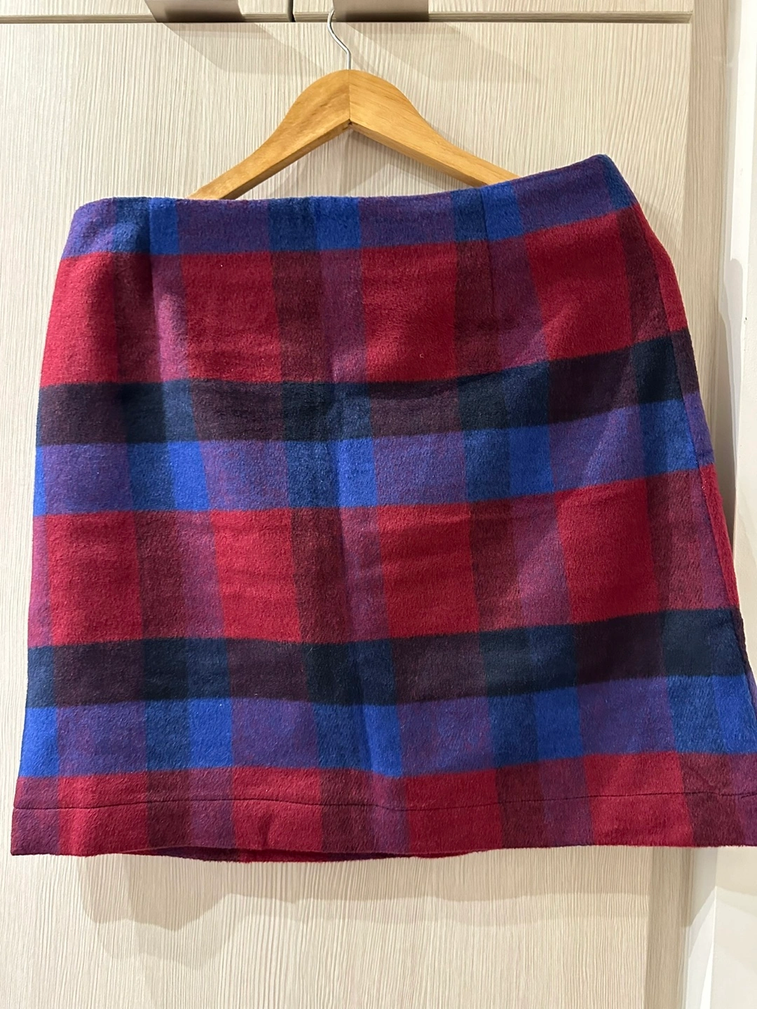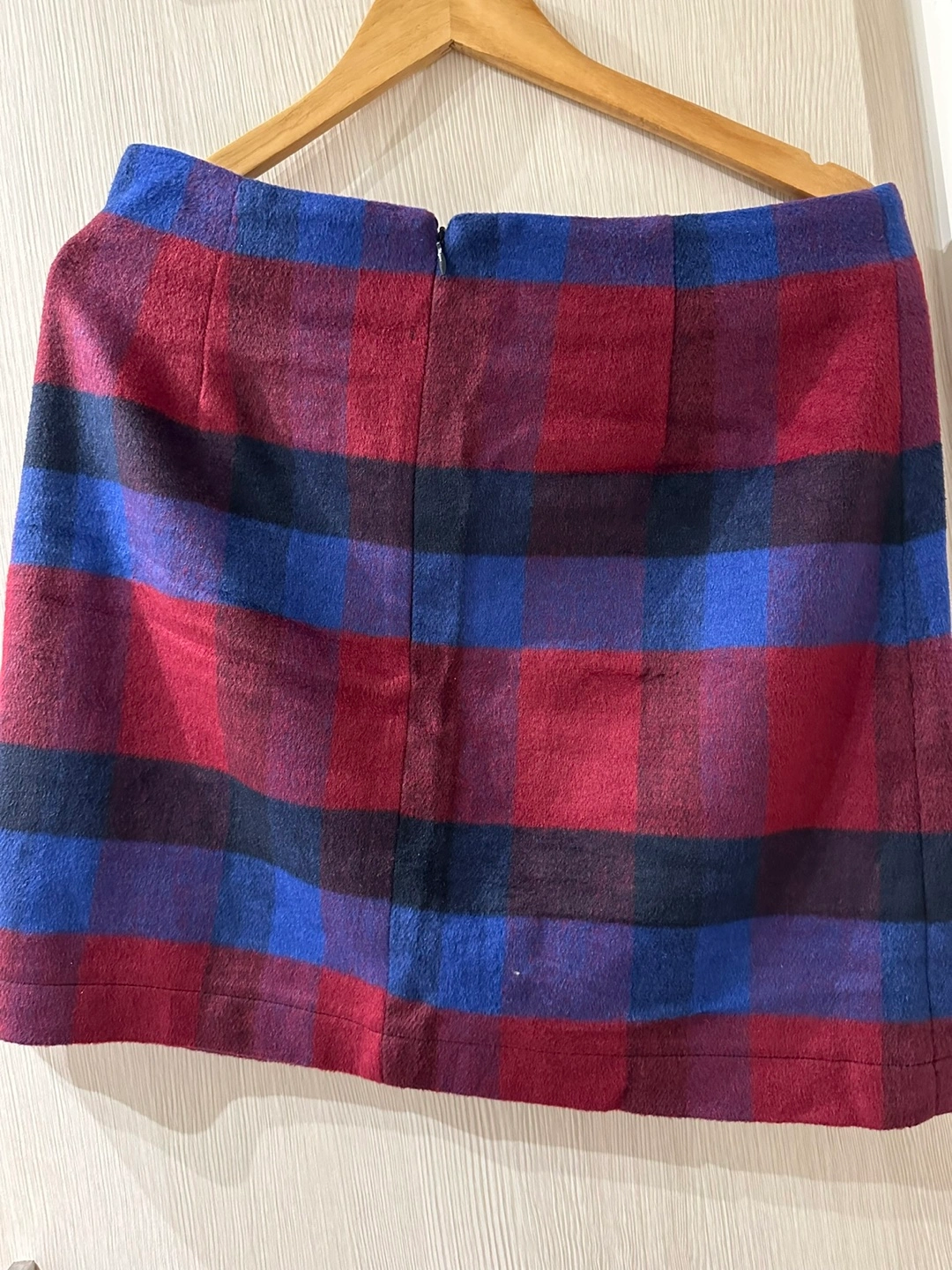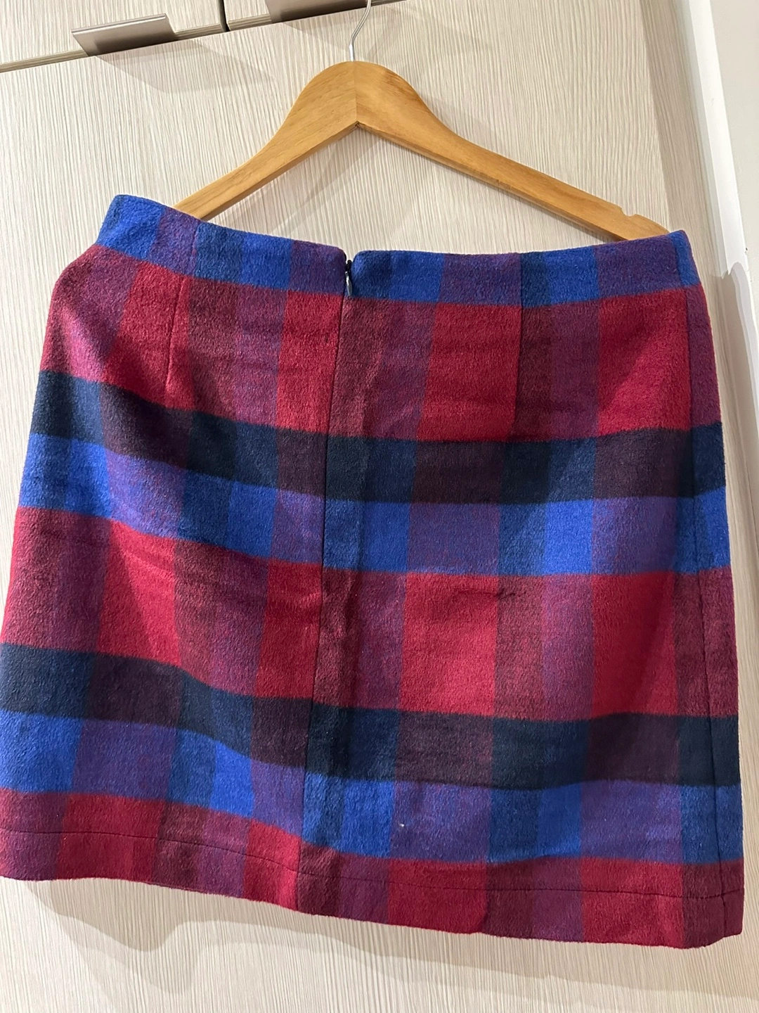 Selling a Joe Fresh plaid mini skirt in size 10! The skirt features a vibrant plaid pattern with shades of red, blue, and black. It's in great condition and perfect for adding a pop of colour to your wardrobe