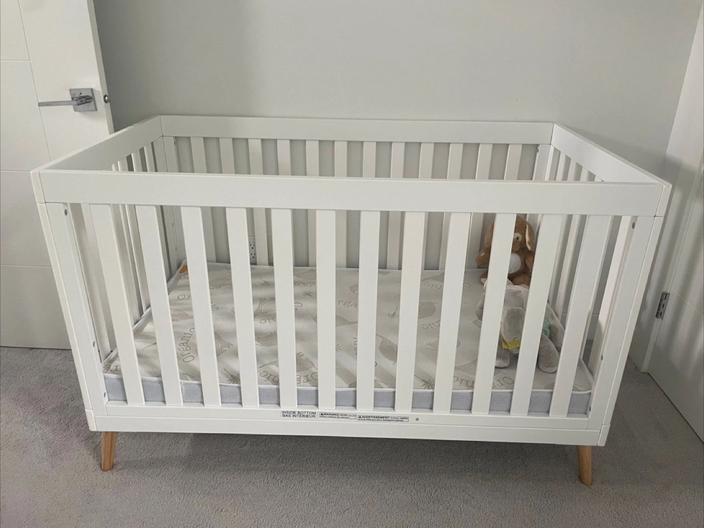 Selling a Delta Children Tucker 4-in-1 Convertible Crib in Bianca White with natural legs. My baby only sleeps with us so never really used . Bought it 2 months ago for $290