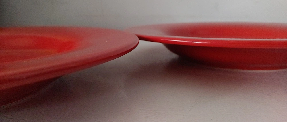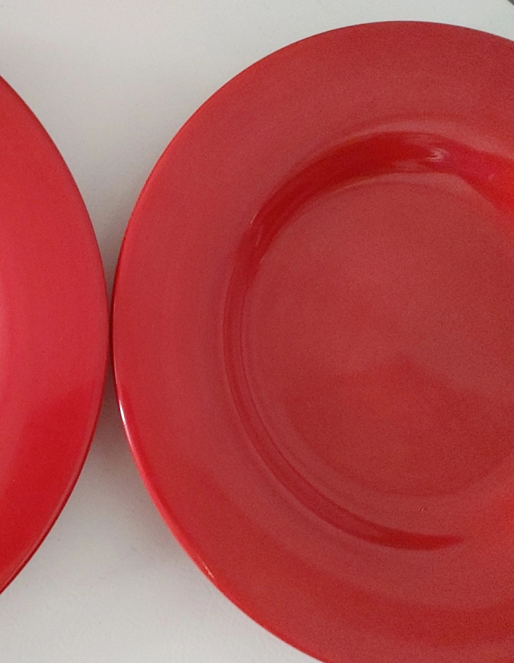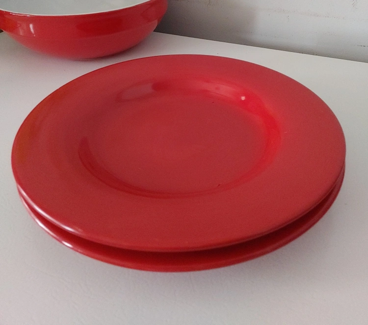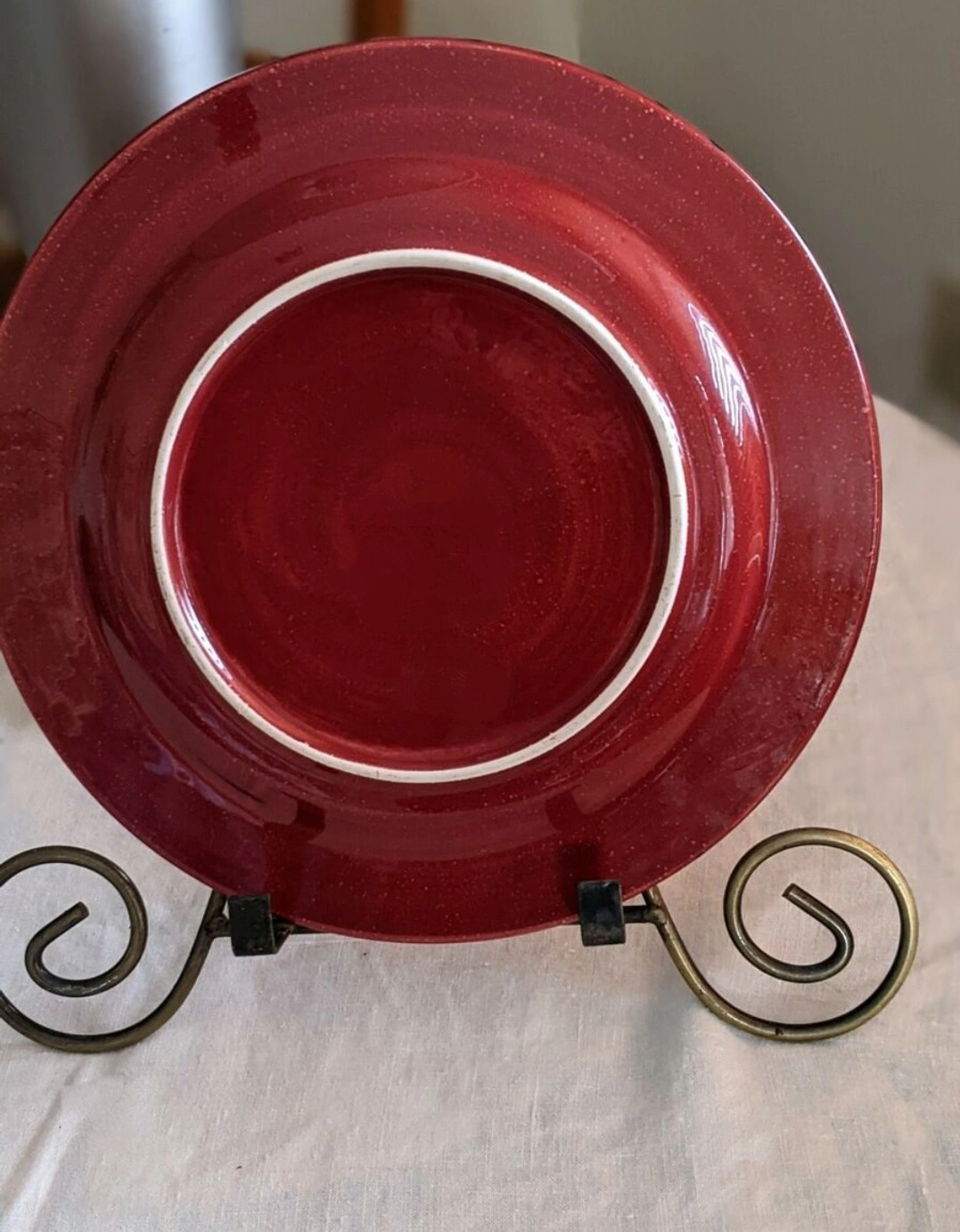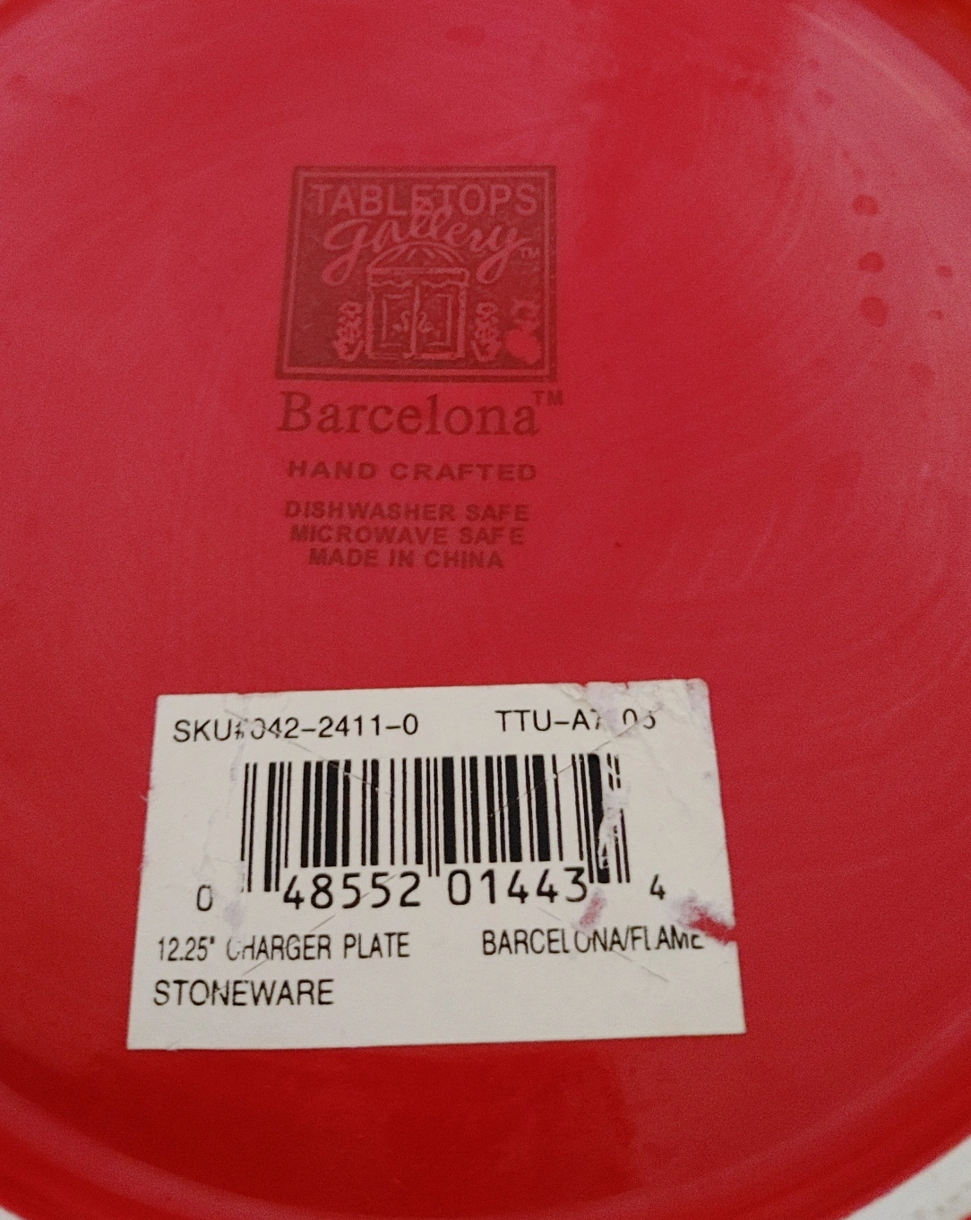 I'm selling four (4) discontinued, red charger plates from Tabletops Gallery.