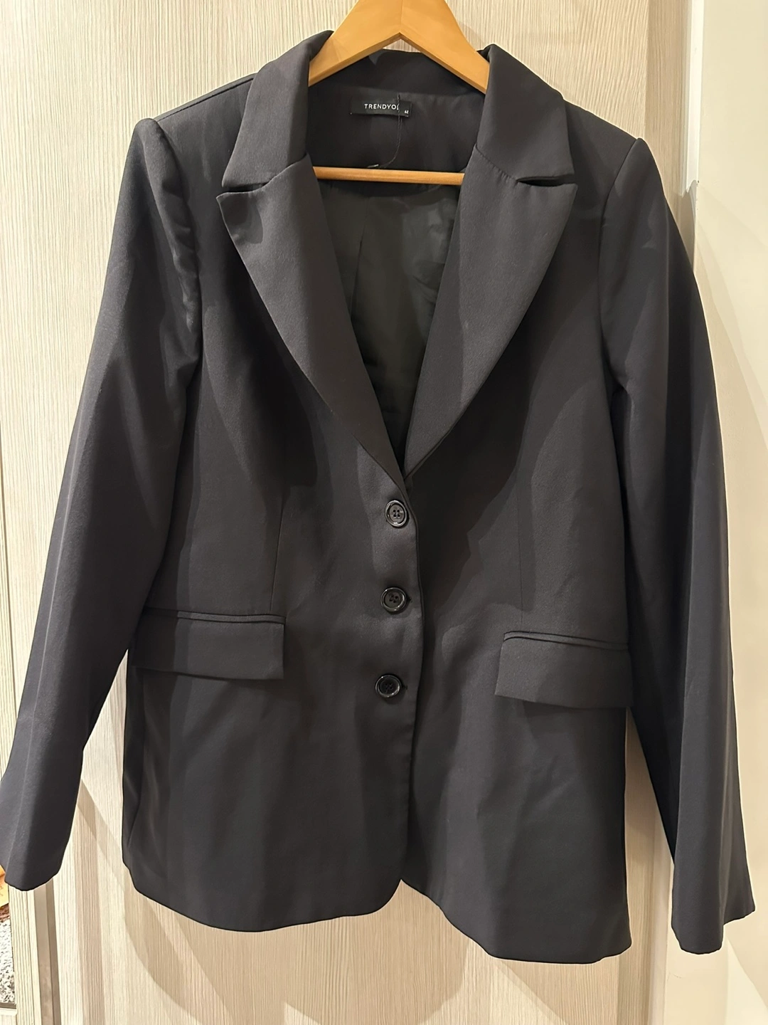 Here's a stylish black blazer from Trendyol! It's a size 42 and would make a great addition to your wardrobe